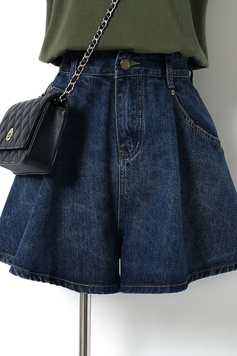 レトロデニムショートパンツレディース2025夏薄手ハイウエストゆったり万能痩身小柄Aラインワイドレッグホットパンツ