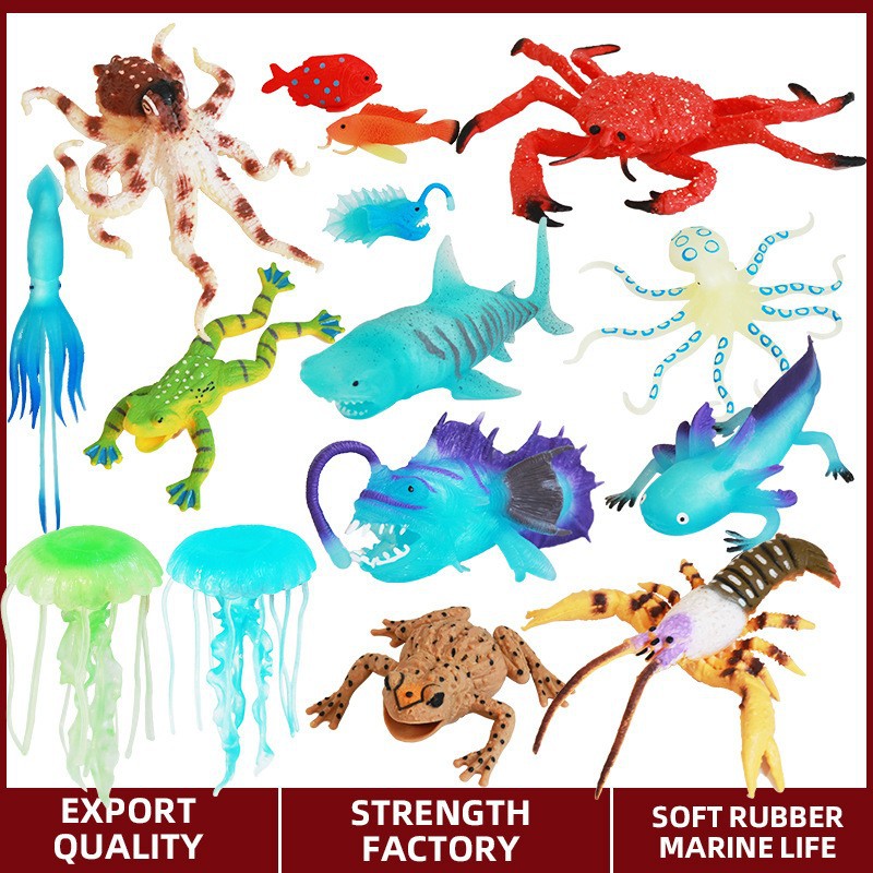 软体海洋动物模型夜光八爪鱼章鱼玩偶河豚海星鲨鱼安康鱼儿童玩具
