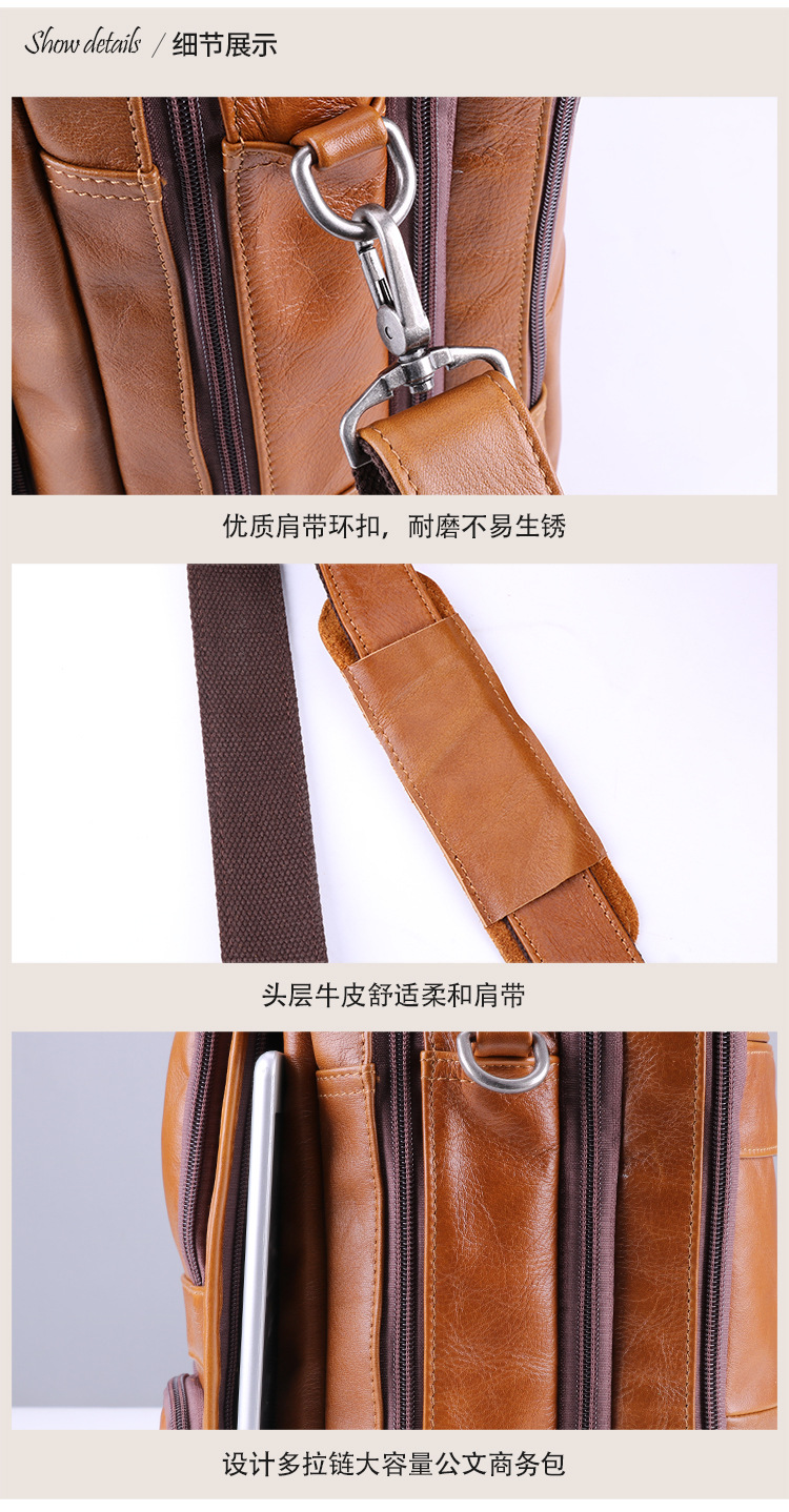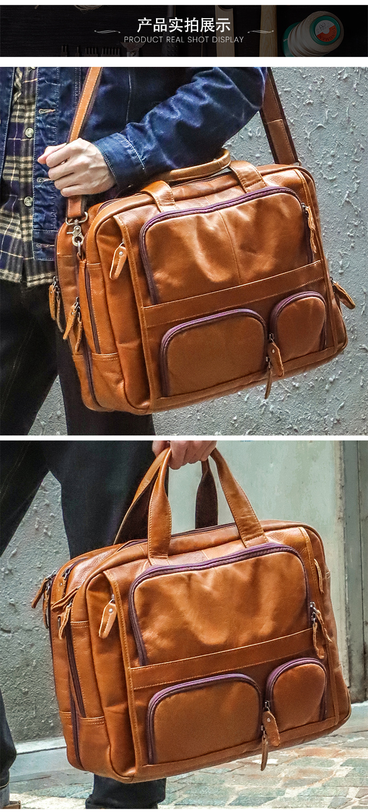 热销真皮男士公文包商务通勤手提包复古多功能包包大容量单肩包
