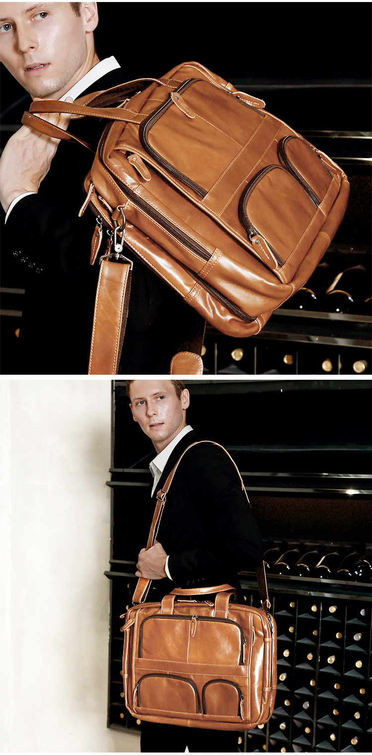新品本革ブリーフケース牛革17インチ大容量ビジネスラップトップバッグメンズオイルレザーシングルショルダーバッグ