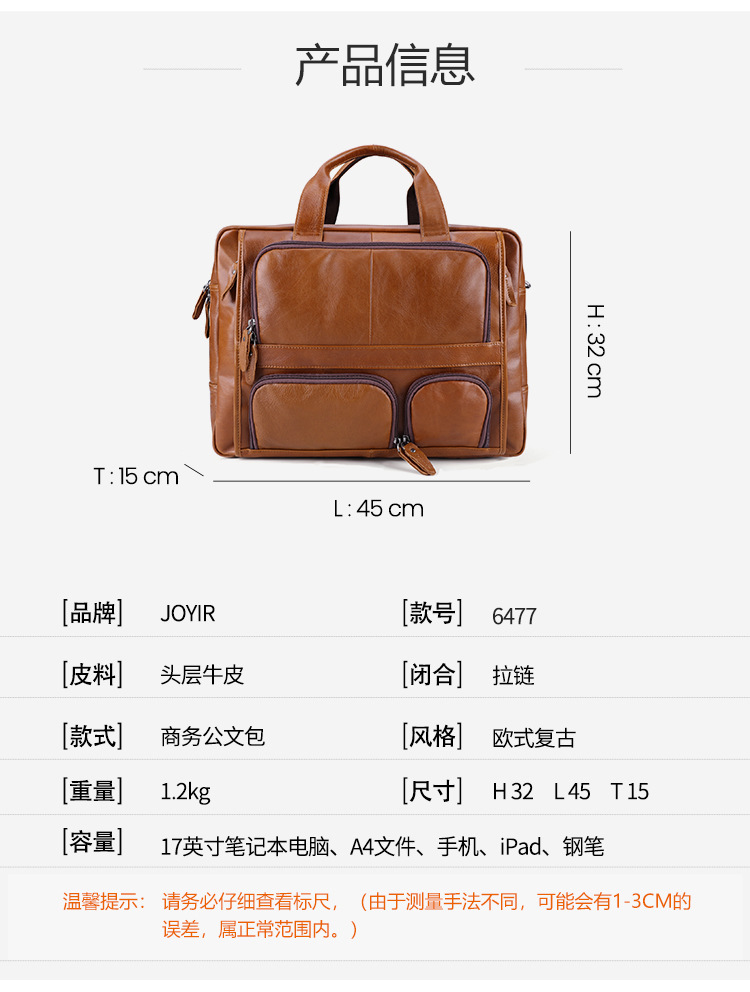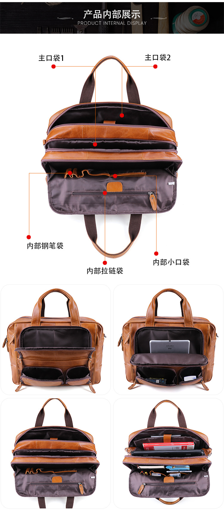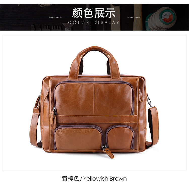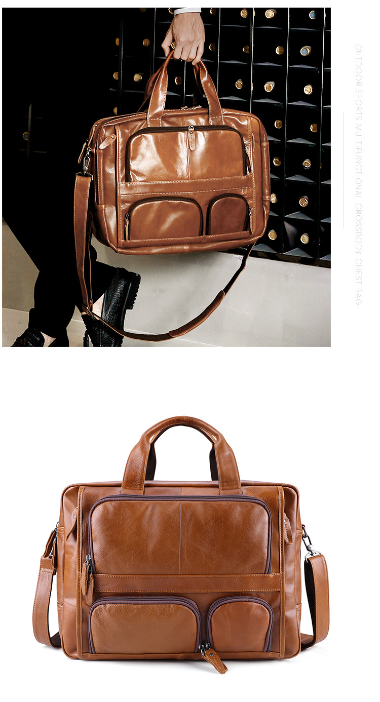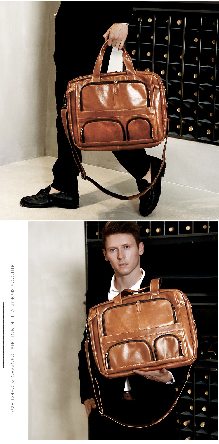 新款真皮大容量公文包多口袋隔层油蜡皮商务手提包17寸通勤电脑包