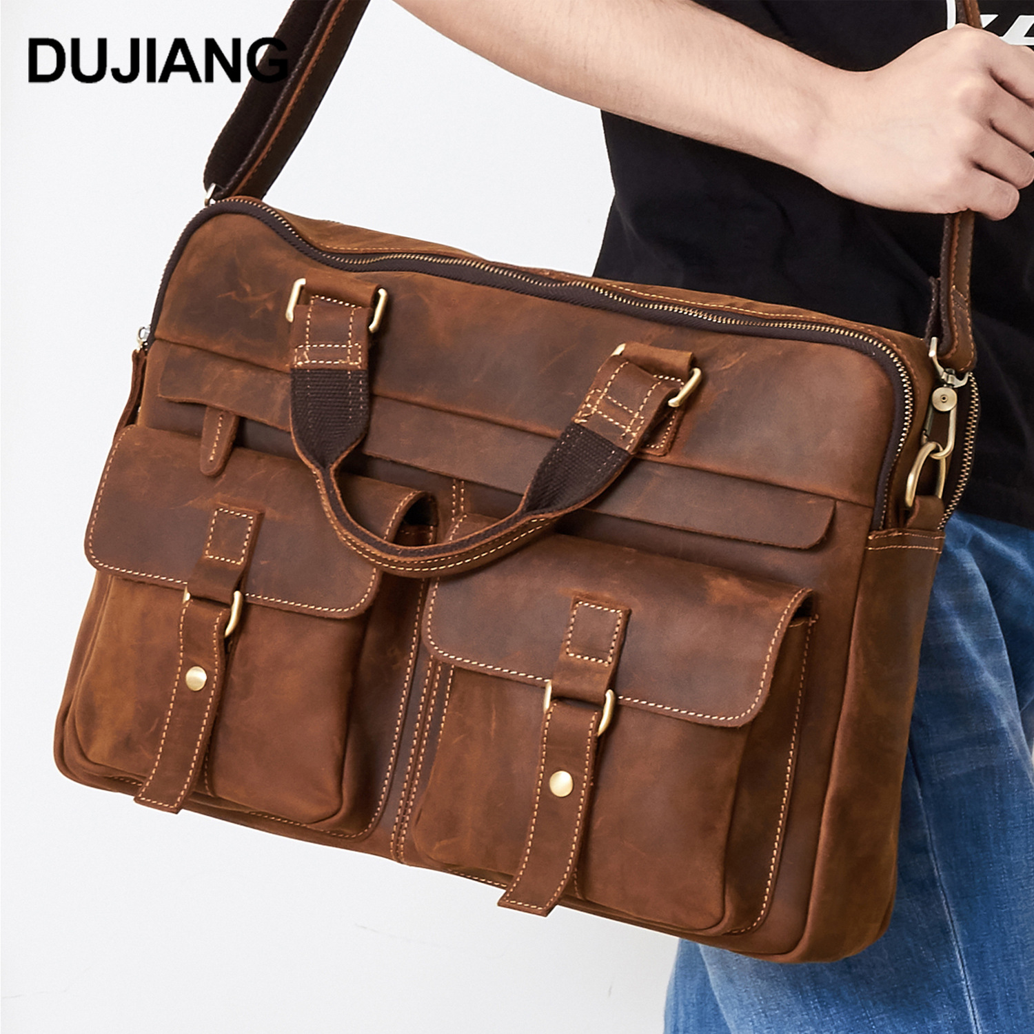 DUJIANG 越境ホット販売コンピュータバッグレトロビジネスメンズハンドバッグ本革メンズバッグクレイジーホーススキンブリーフケース