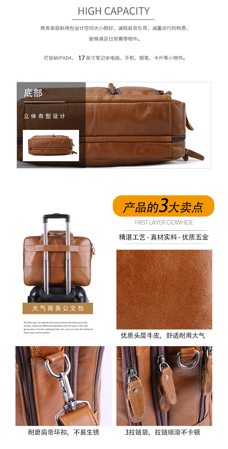 真皮男士手提包高级感头层牛皮商务公文包大容量包包男包跨境热销