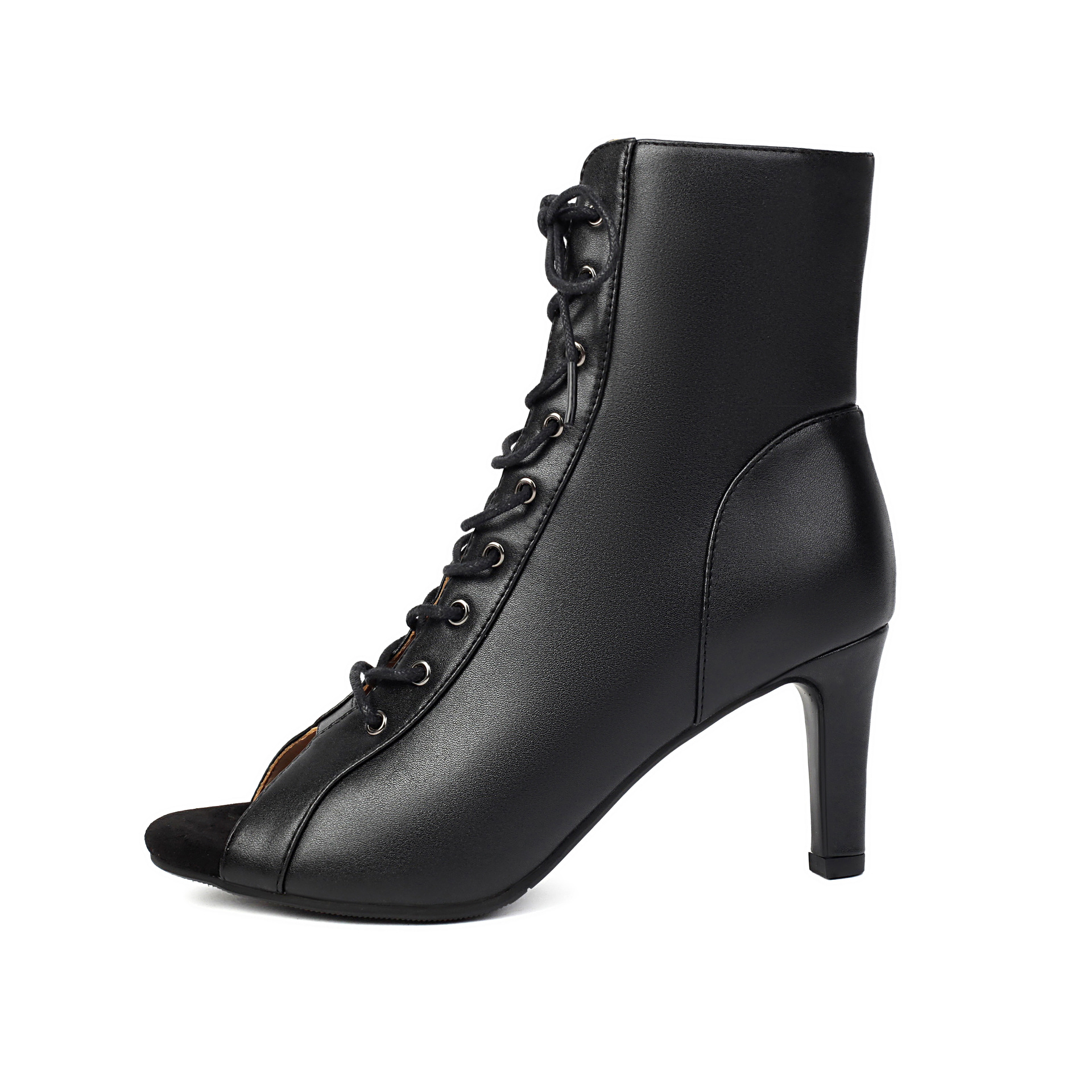 heels舞鞋jazz爵士舞高跟鞋女跳舞蹈鱼嘴细跟短靴子系带凉靴大码