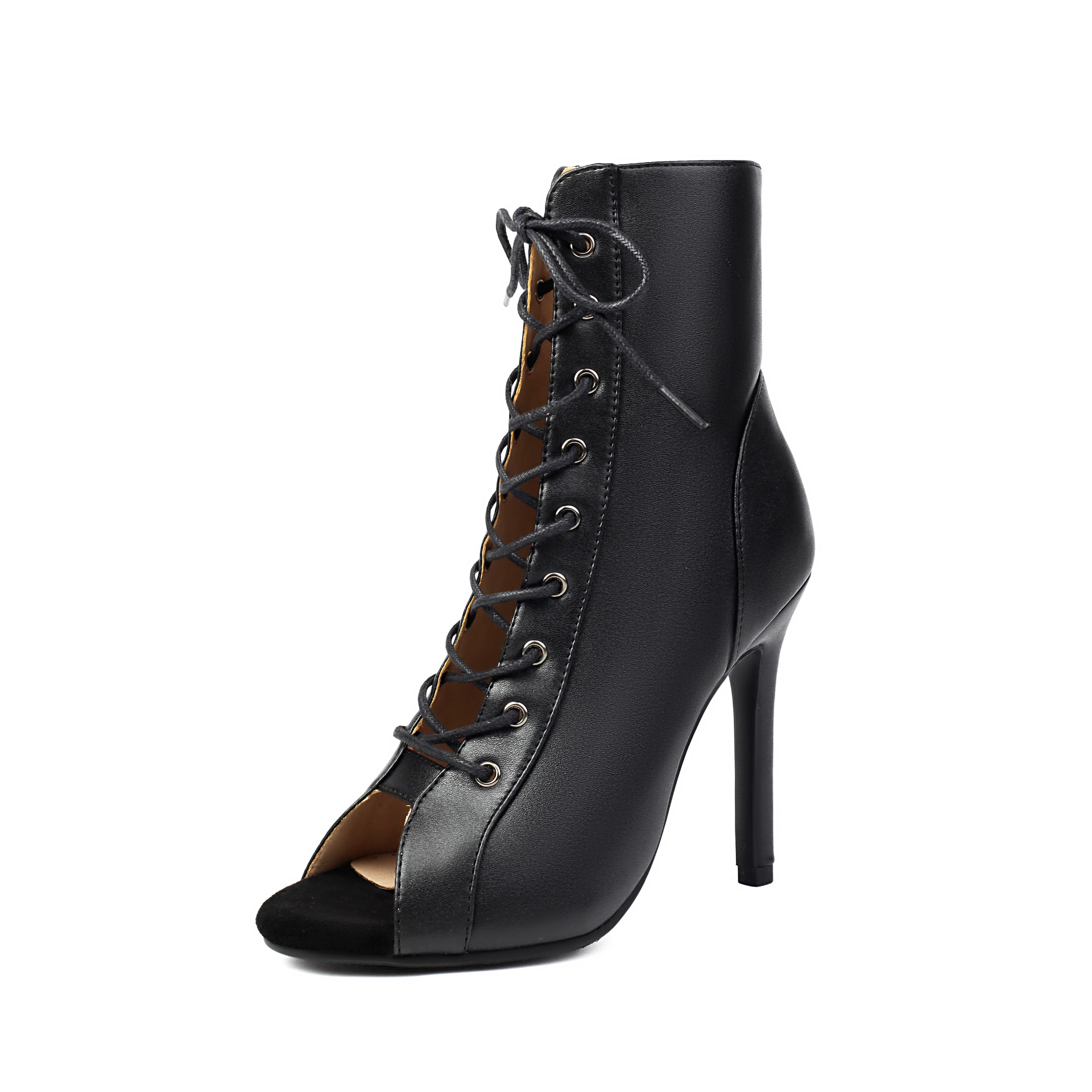欧美系带鱼嘴凉靴女夏季细跟镂空短靴爵士舞蹈跳舞高跟鞋凉鞋大码