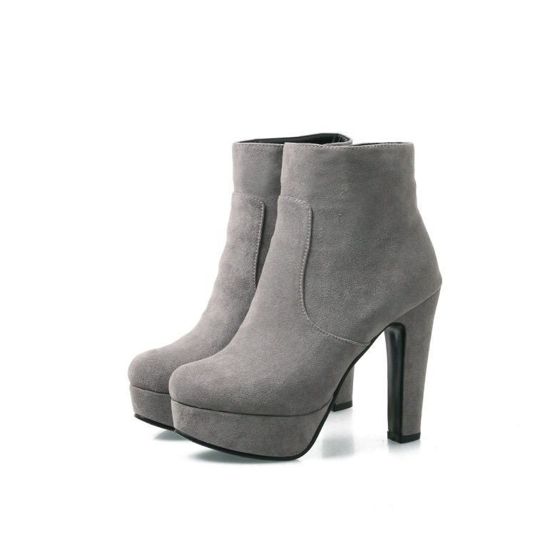 欧米風 大きいサイズ レディースシューズ 太ヒール 防水プラットフォーム ショートブーツ ハイヒール ラウンドトゥ ショートブーツ レディースブーツ 超ハイヒール