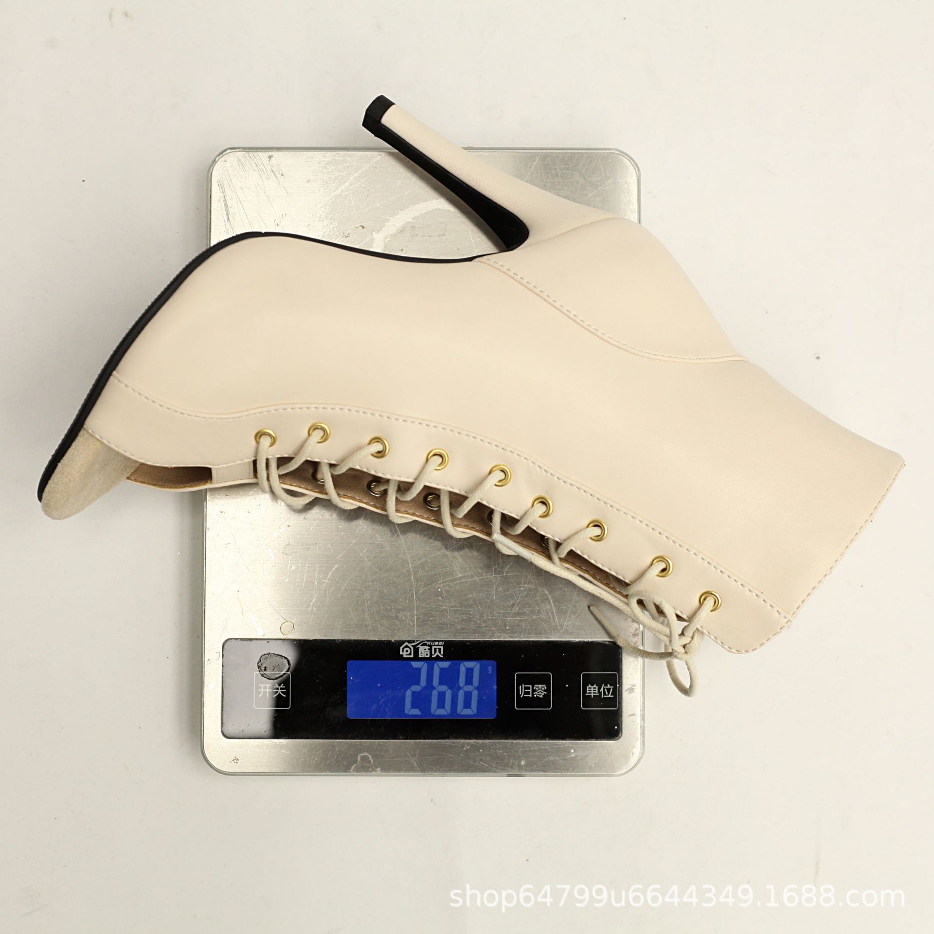 欧美系带鱼嘴凉靴女镂空短靴heels鞋爵士舞蹈鞋跳舞绑带高跟鞋
