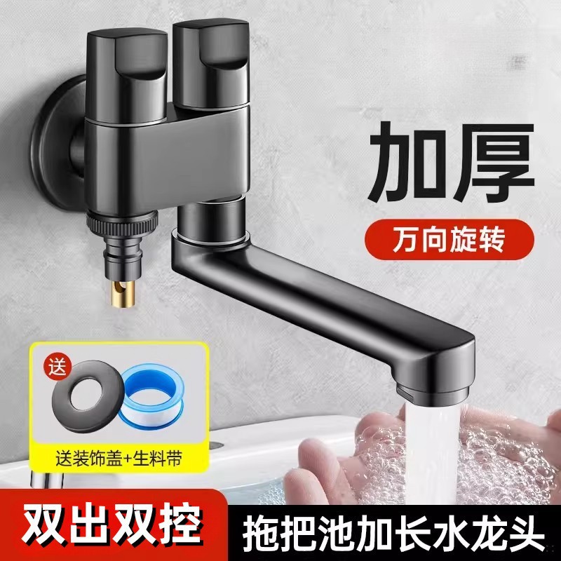 阳台拖把池加长水龙头洗衣机用一进二出万向旋转龙头一分二头