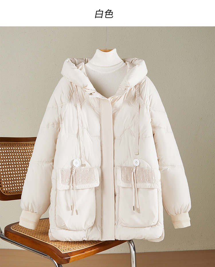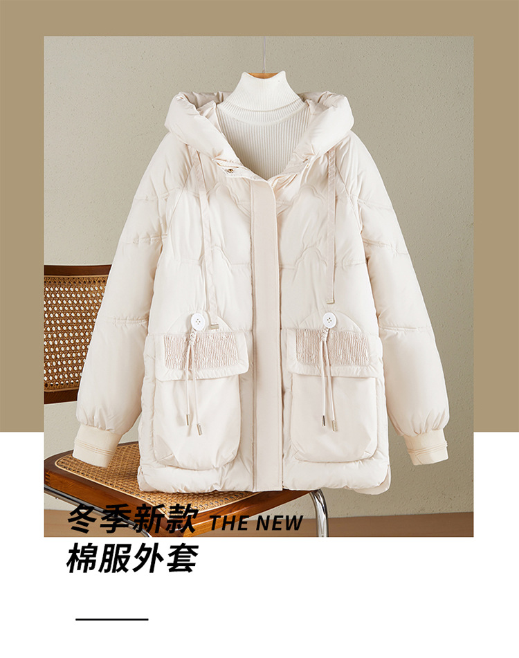 2025秋冬季新款云朵泡芙加厚保暖棉衣女中长款连帽面包服棉服外套
