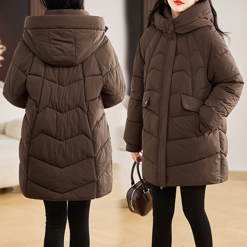 越境冬の新型綿服の女性は長い金を加えてひざを越えます。