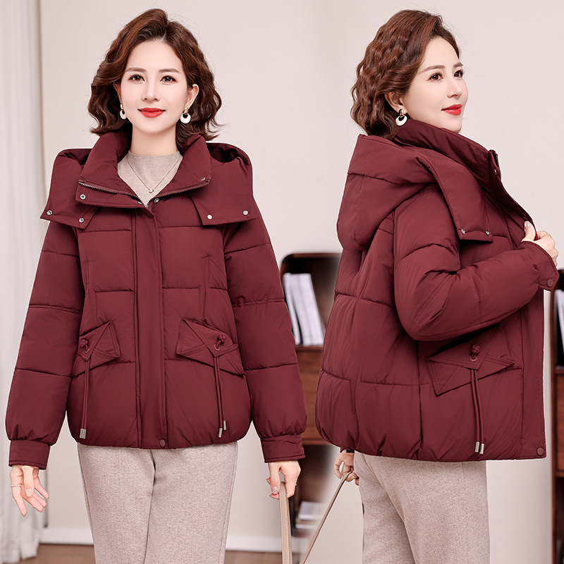 中老年羽绒棉服女短款连帽冬新款时尚韩版棉衣大码妈妈装棉袄外套
