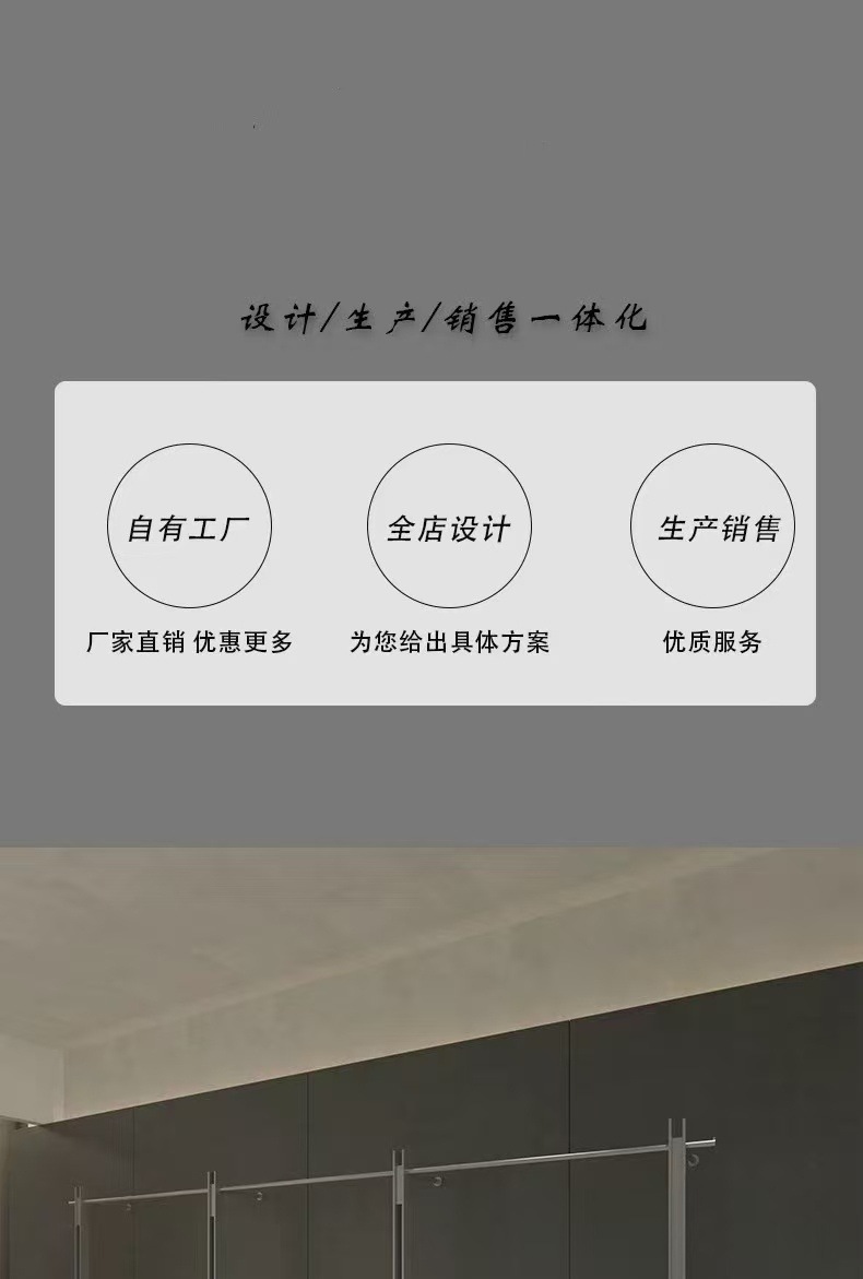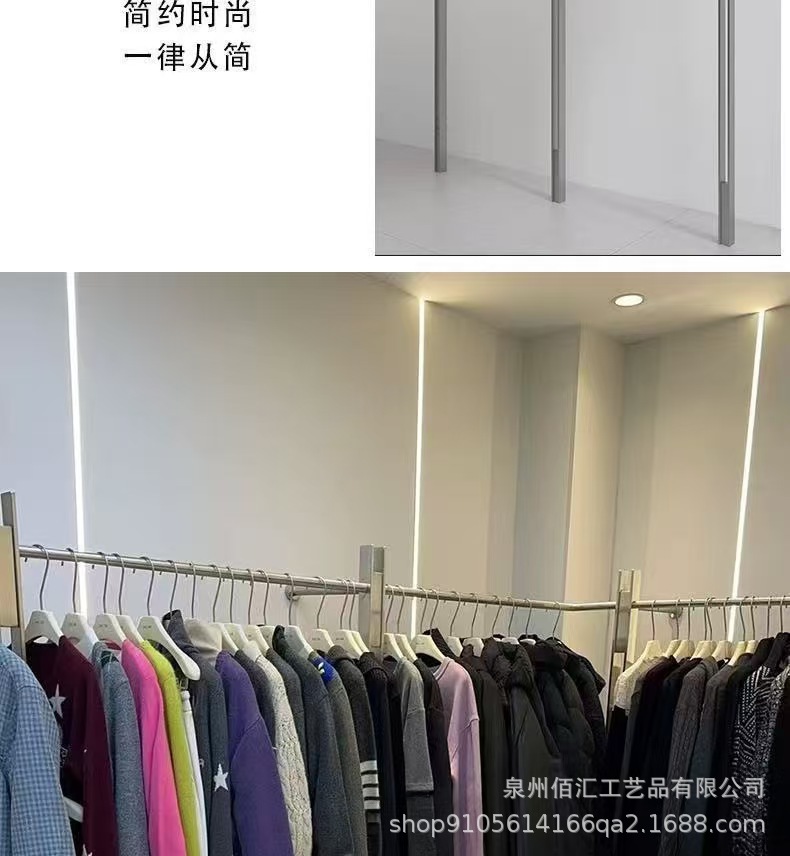 洋服店展示棚ステンレス壁掛け高級潮牌店陳列ハンガー円柱服棚