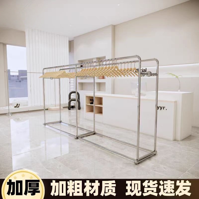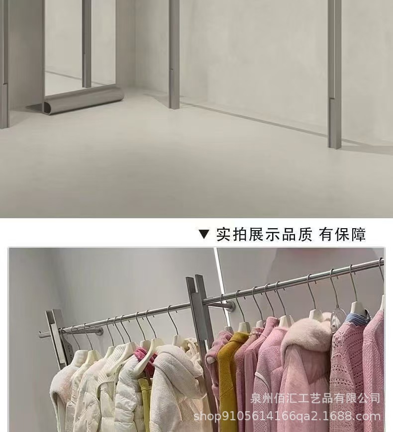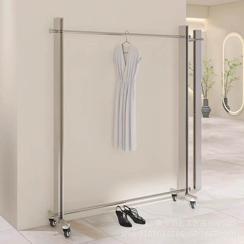 新款服装店不锈钢展示架落地式女装店侧挂架上墙陈列架移动中岛架