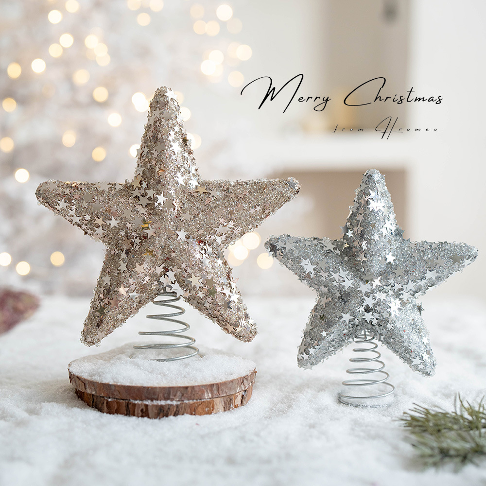 泡キラキラクリスマスツリー星トップ装飾バネ式樹頂星五角星クリスマス装飾品