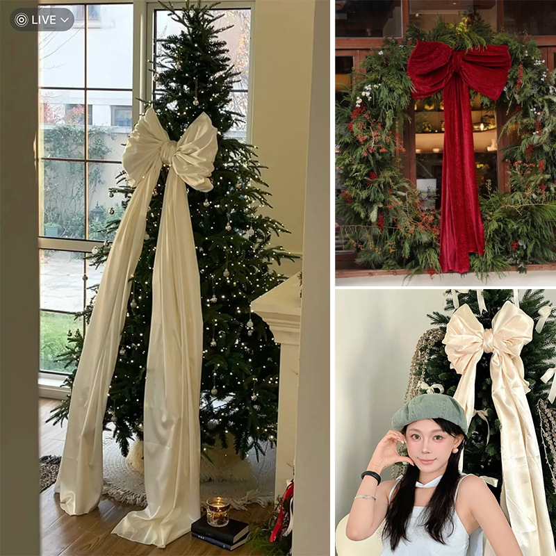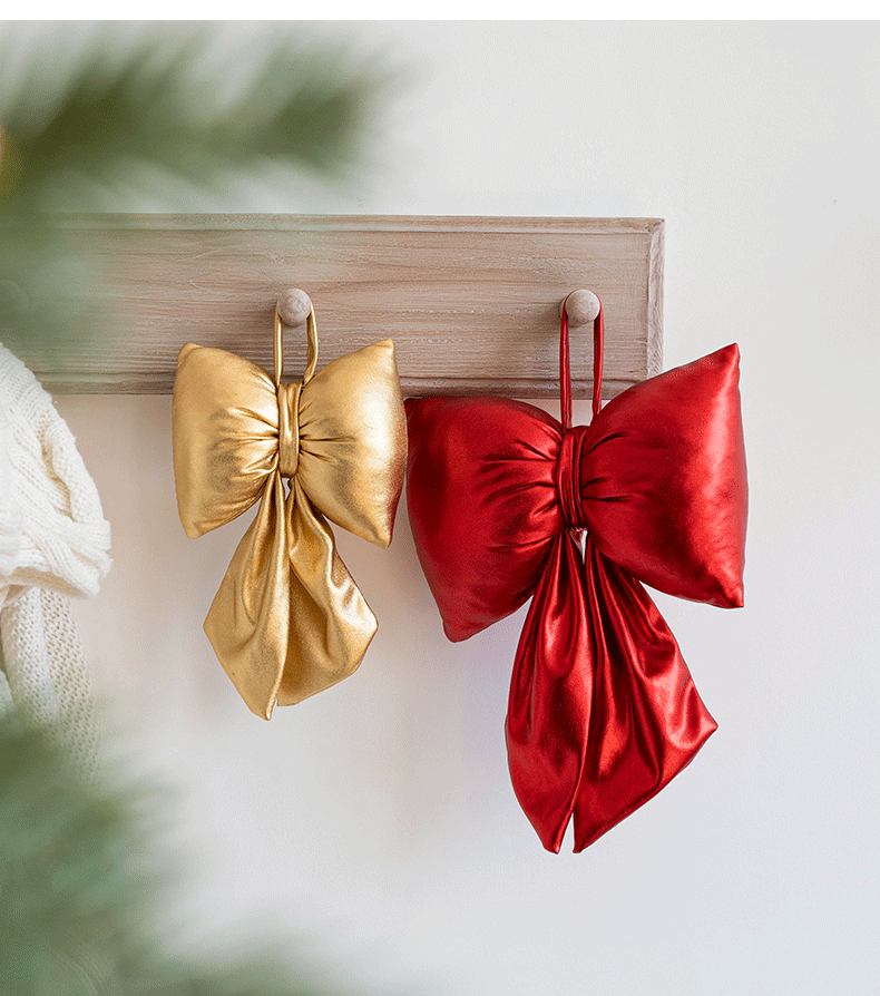 圣诞节装饰品亮面绒布圣诞蝴蝶结圣诞树装饰挂饰节日氛围布置
