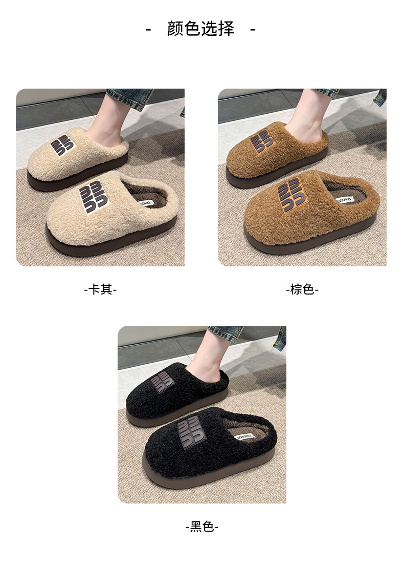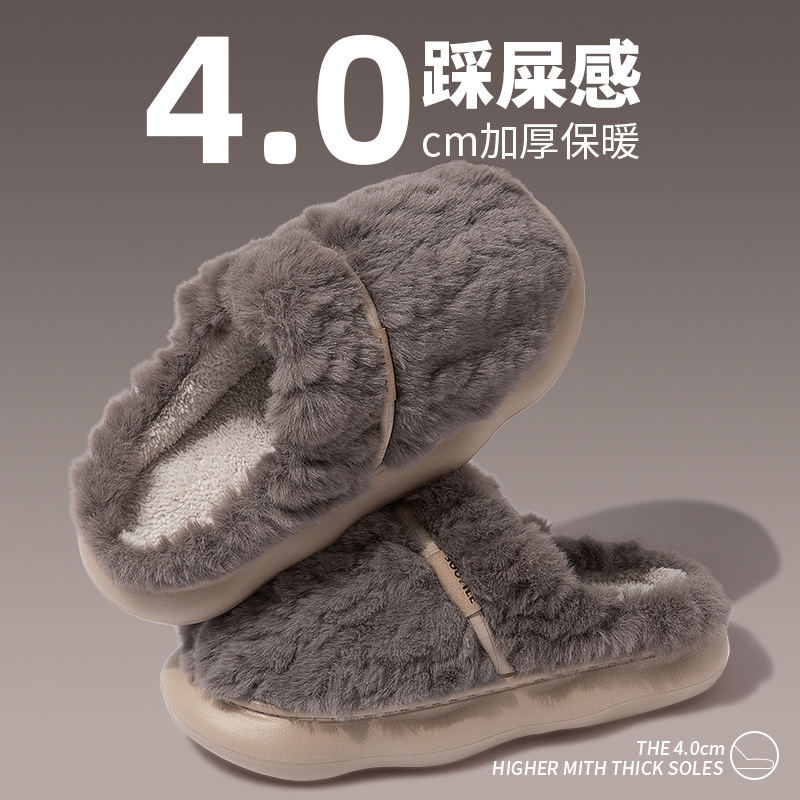 厚底棉拖鞋男士冬季新款情侣家居室内保暖加绒加厚踩屎感毛绒拖鞋