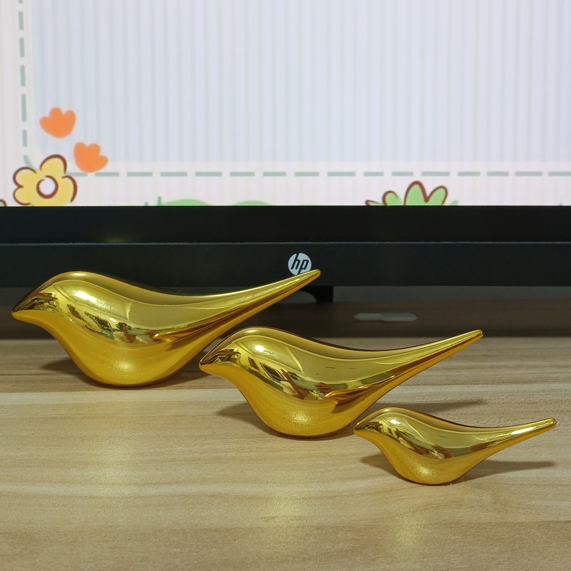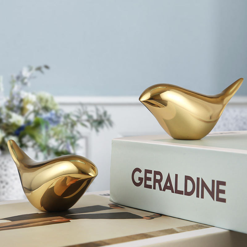 北欧風メタルゴールドの鳥の置物、リビングルーム、書斎の装飾、コーヒーテーブル、デスクトップ工芸品、テレビ台
