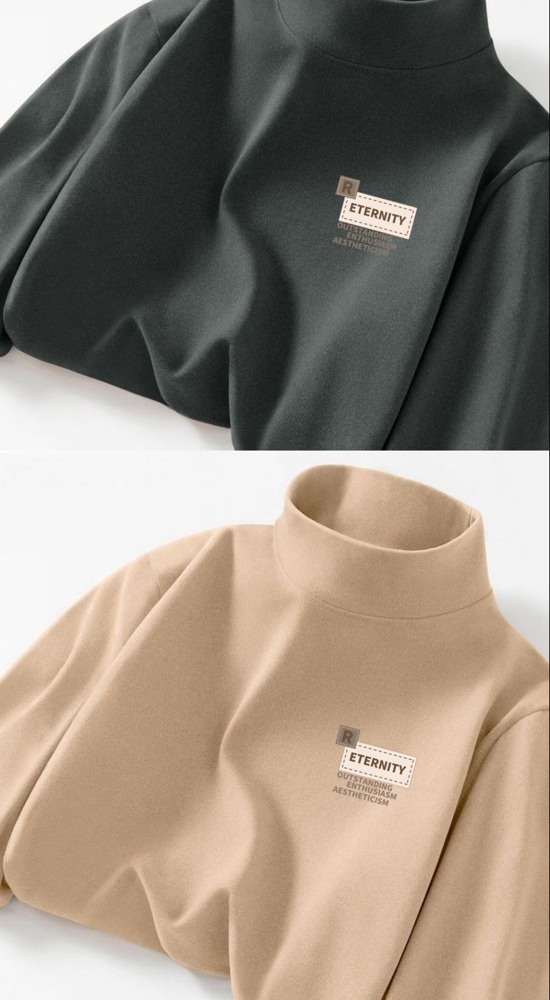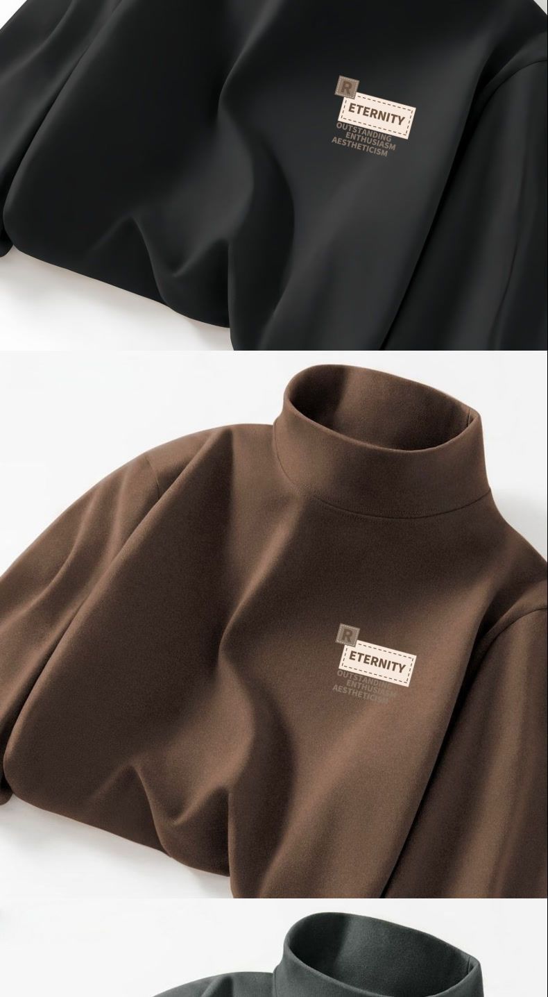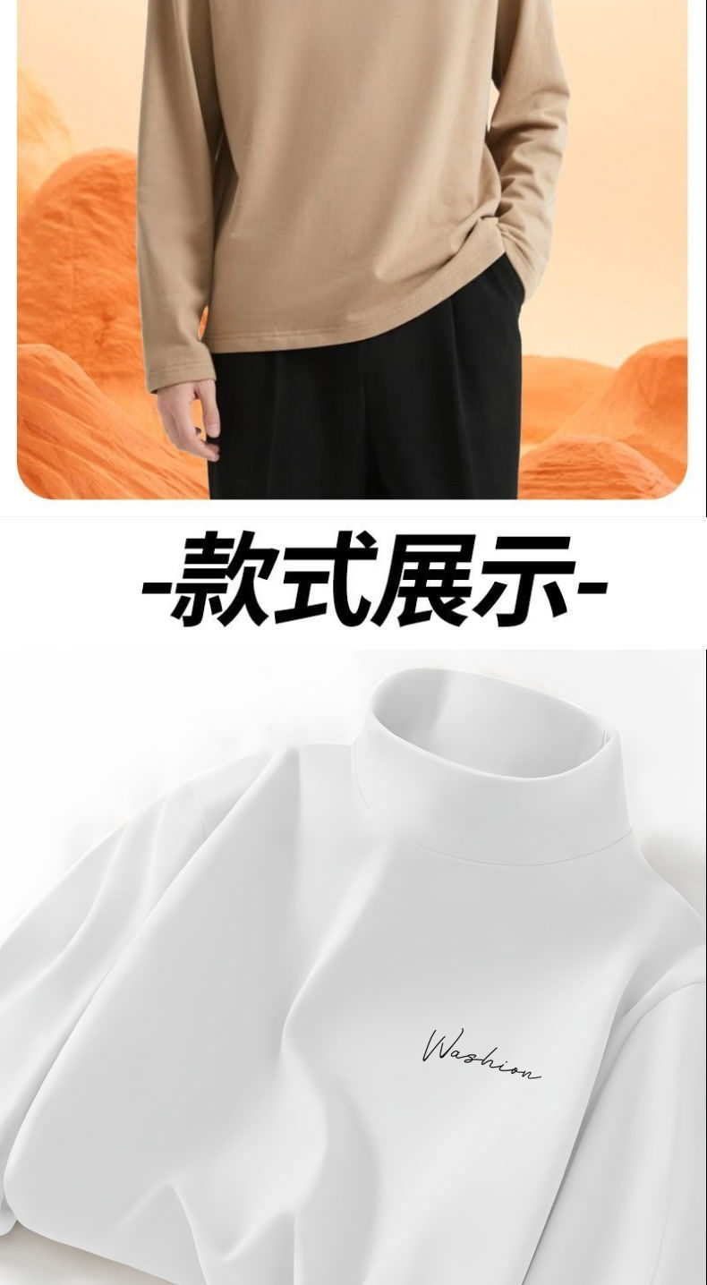 德绒字母印花半高领打底衫男新款秋冬保暖美式简约ins青年长袖T恤