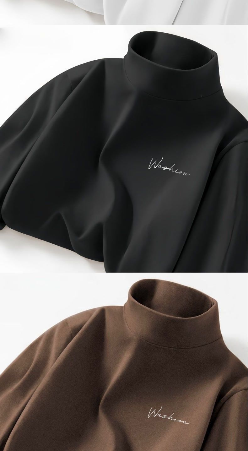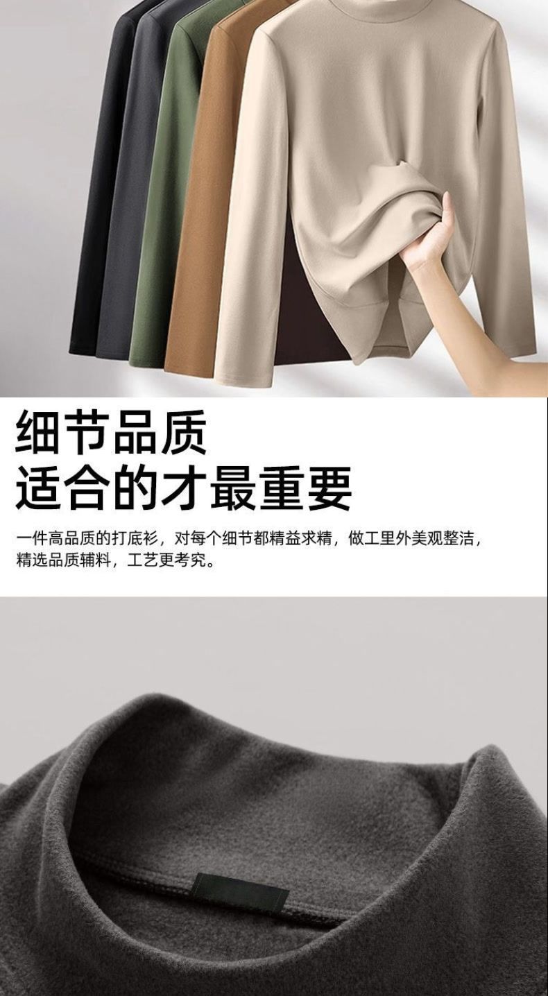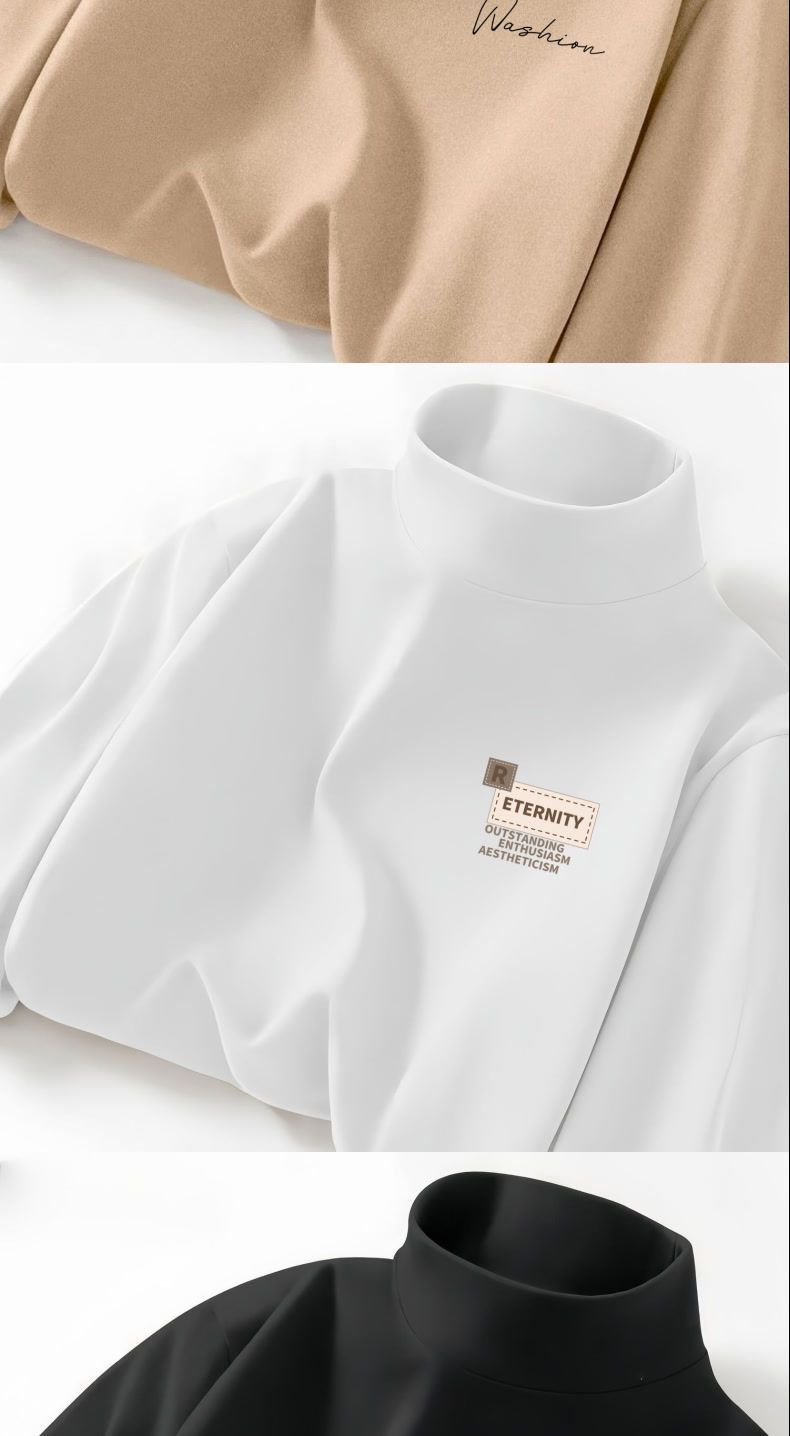 德绒字母印花半高领打底衫男新款秋冬保暖美式简约ins青年长袖T恤