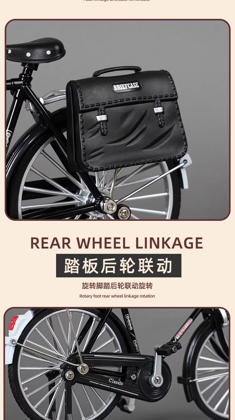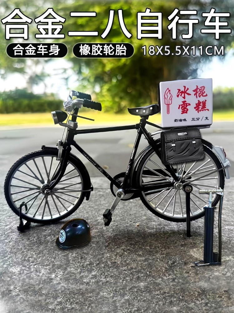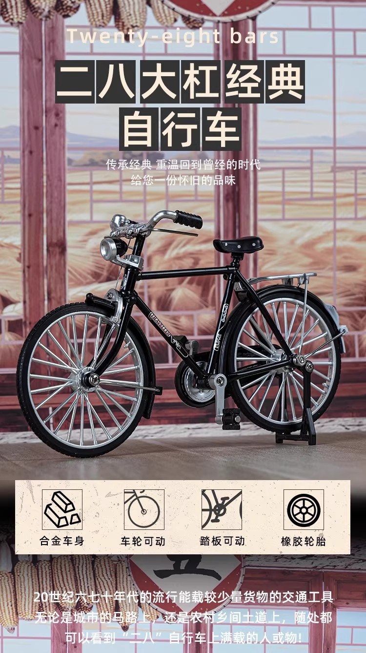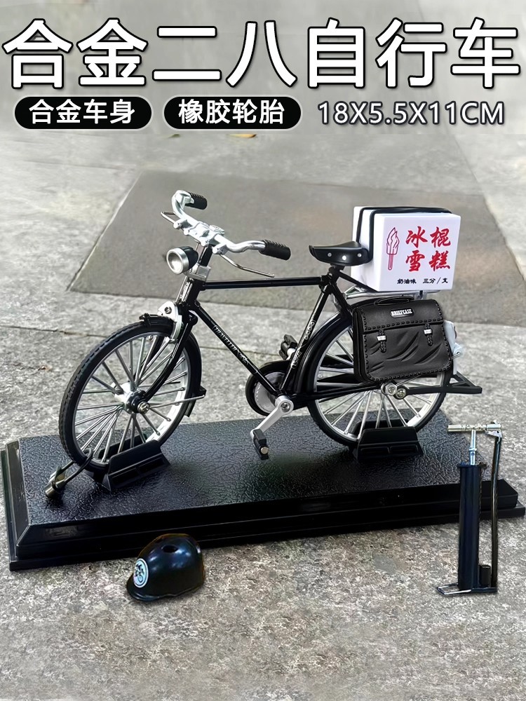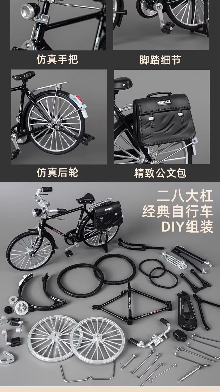 复古二八大杠合金自行车1:10仿真模型怀旧玩具DIY组装脚踏车摆件