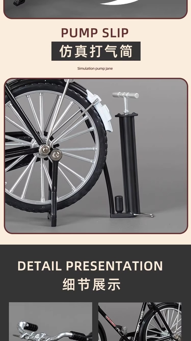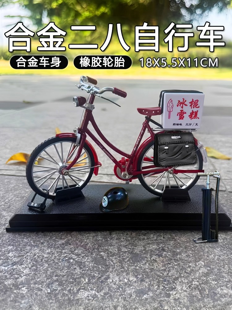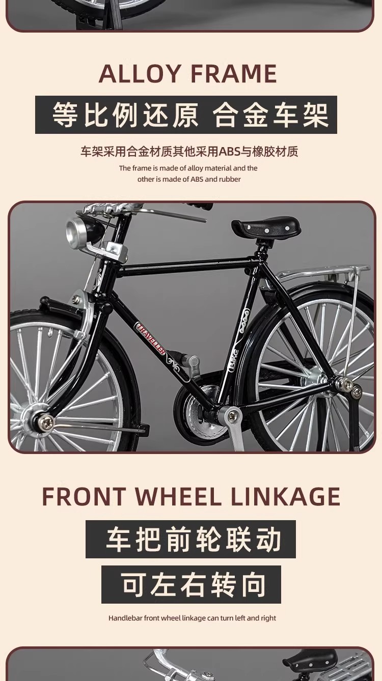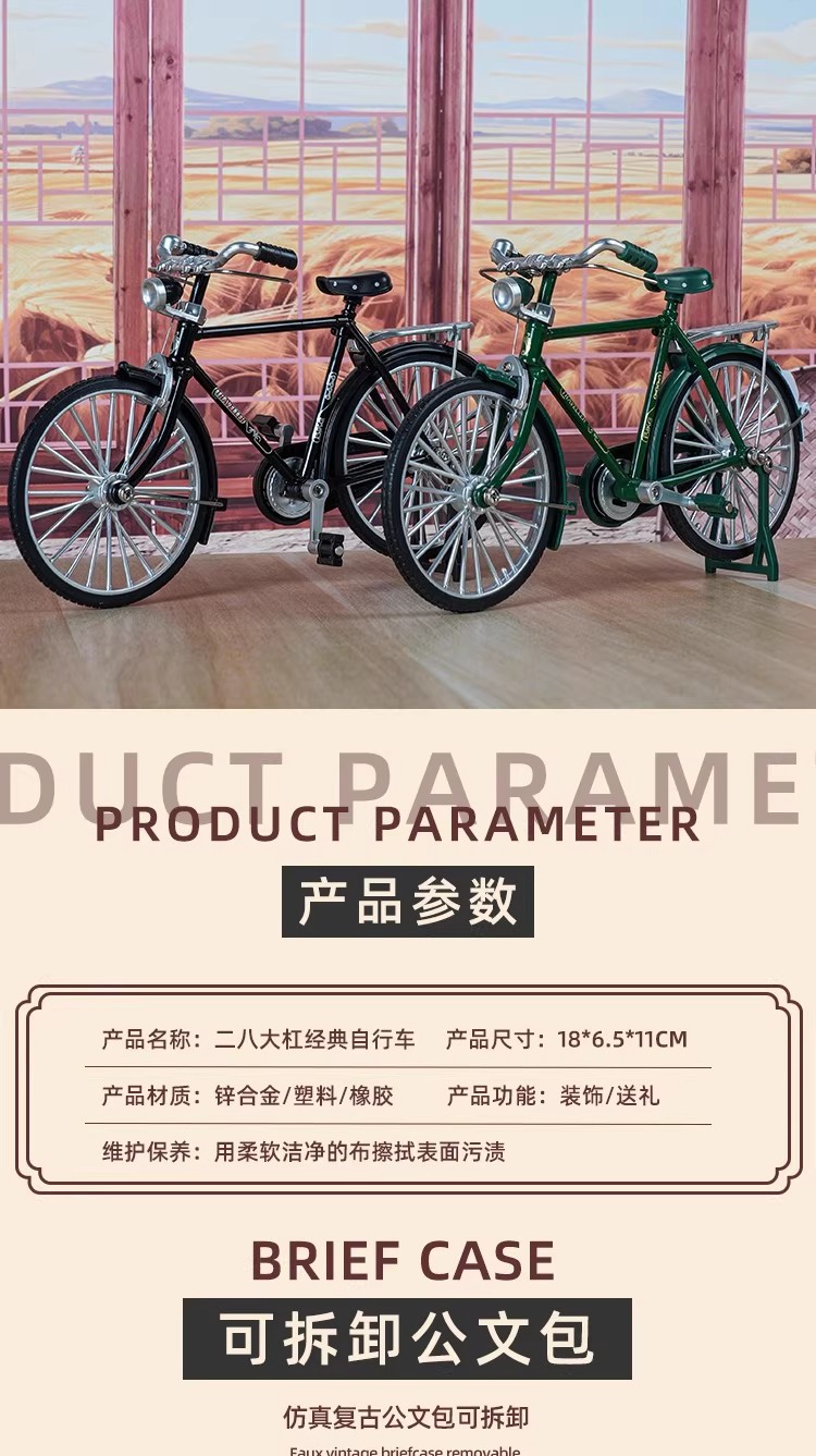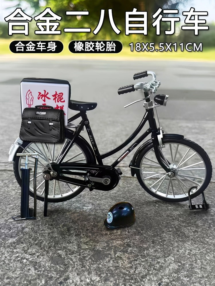 复古二八大杠合金自行车1:10仿真模型怀旧玩具DIY组装脚踏车摆件