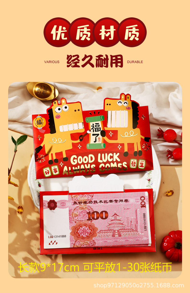2026年馬年通用型紅包漫画風横型デザイン高級箔押し新年福袋卸売