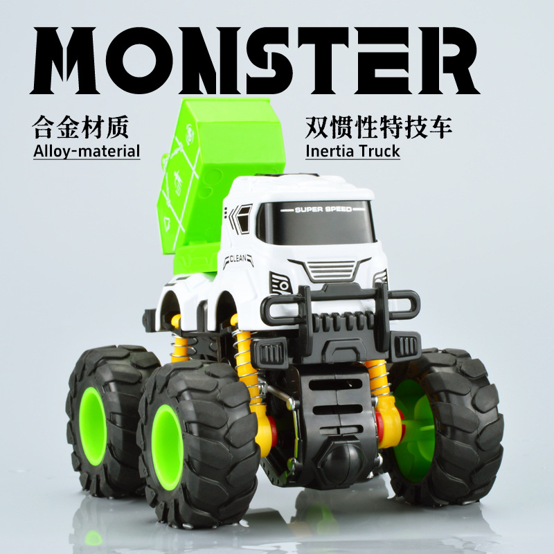 国境を越えた合金慣性スタント衛生車両おもちゃ子供用落下耐性ゴミ収集車都市エンジニアリング車両オフロード車モデル