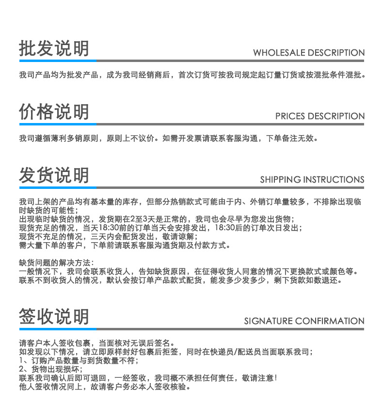 1688.comは中国で生産され、流通している商品を扱うBtoB卸サイトとなります。お客様が弊社サイト内にて仕入処理をされても、日本国内の法律に則り、日本への輸入ができない商材もあり、その場合弊社でも仕入れの手配が出来ません。その際はシステム上で、自動的に注文削除となってしまう事を、恐れ入りますがご了承願います。