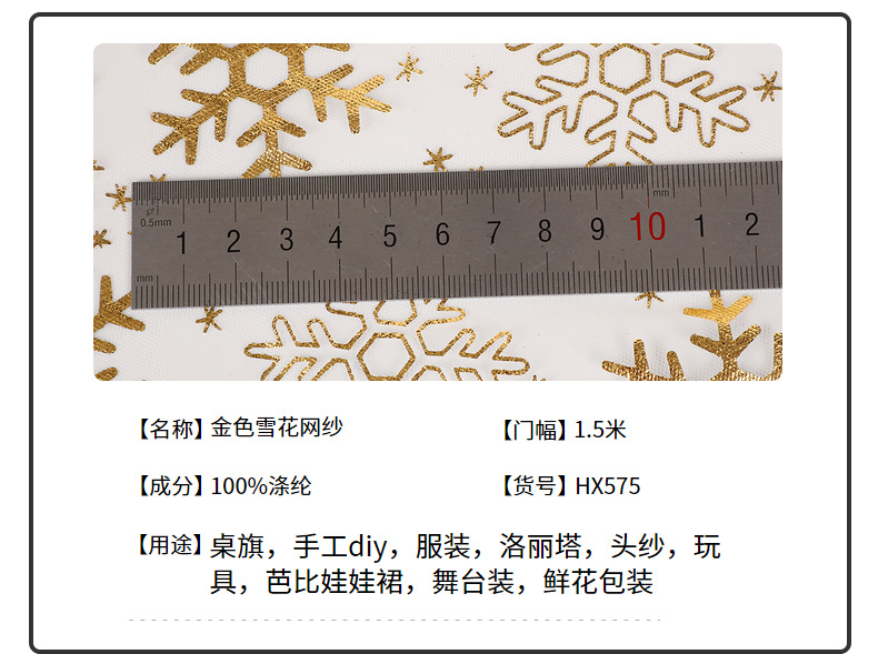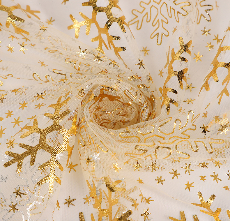 新款金色大雪花网纱面料爱莎公主裙圣诞节场景装饰纱桌旗玩具童装