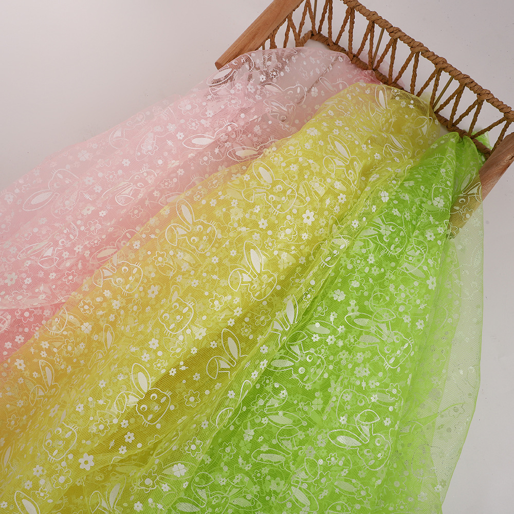跨境复活节兔子Rabbit烫金网纱布料童装辅料节日装饰纱桌旗网纱新