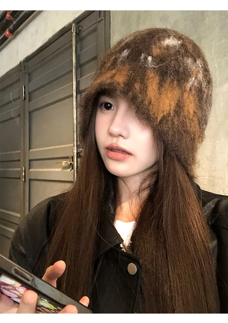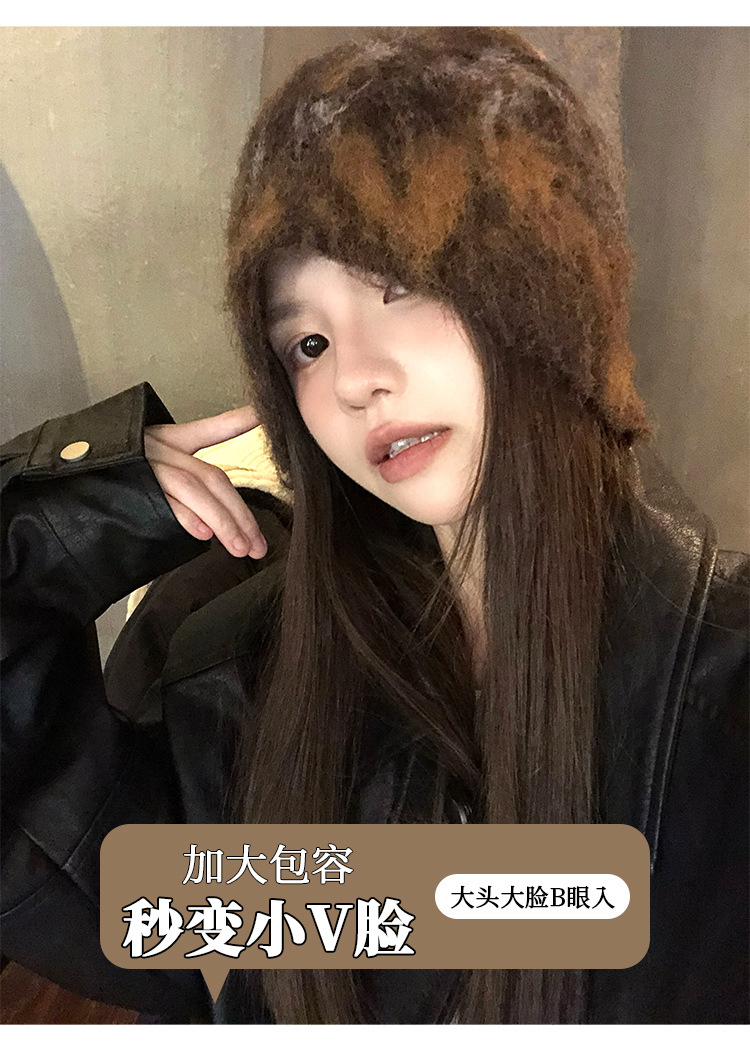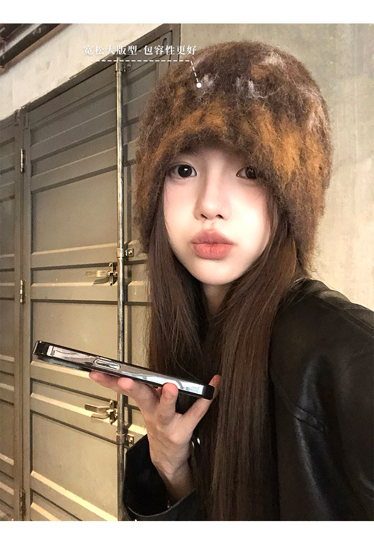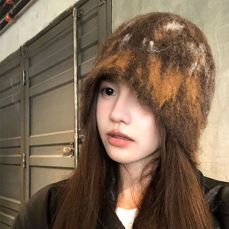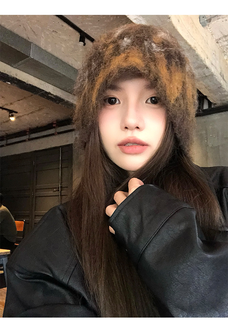 韓国版耳保護包頭帽子真兎毛混紡顔小毛帽秋冬手作りニット帽子雷鋒帽子女