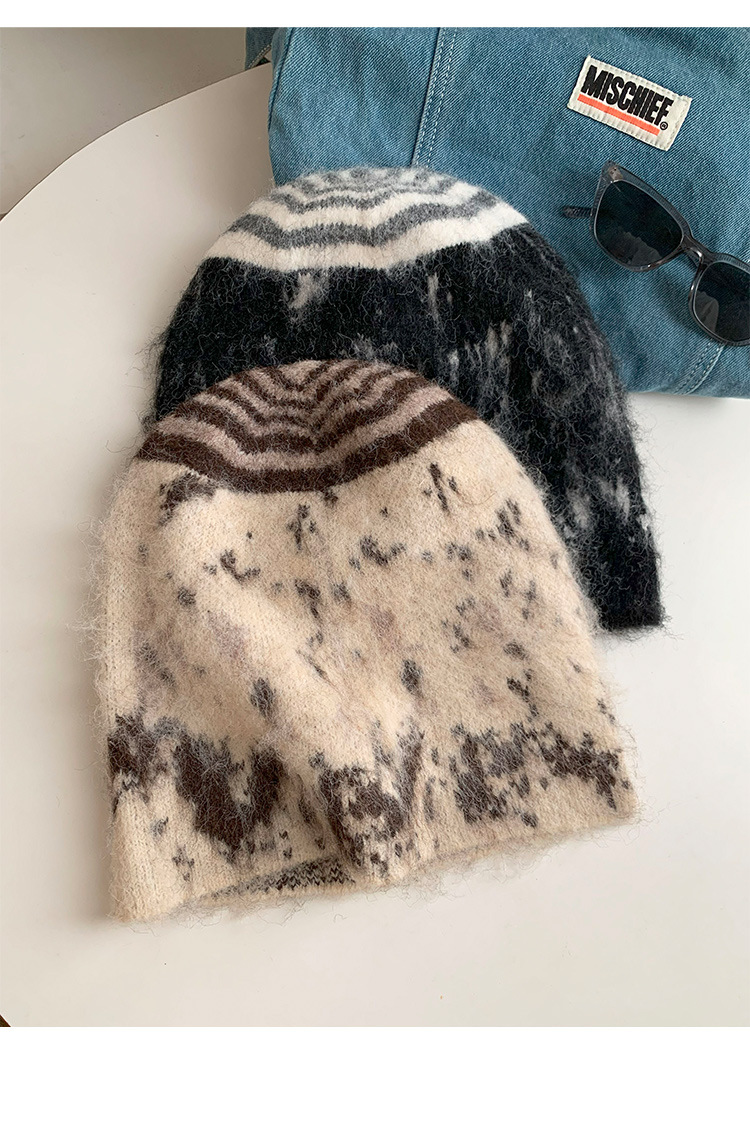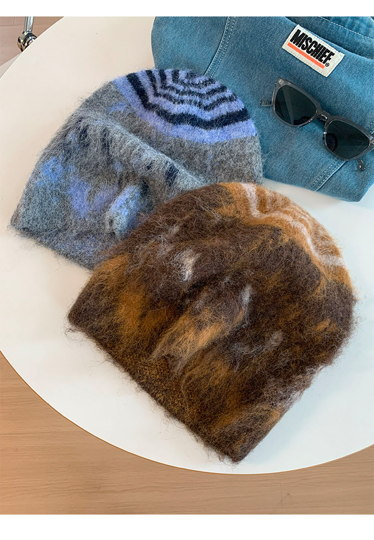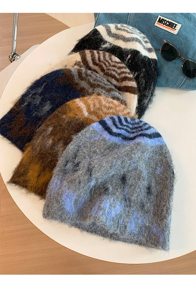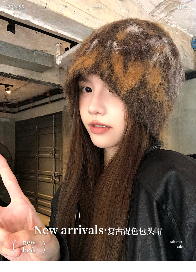 韓国版耳保護包頭帽子真兎毛混紡顔小毛帽秋冬手作りニット帽子雷鋒帽子女