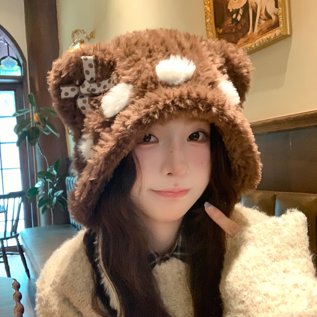 日系可爱小熊耳朵蝴蝶结针织帽子女冬季新款加厚保暖护耳雷锋帽潮