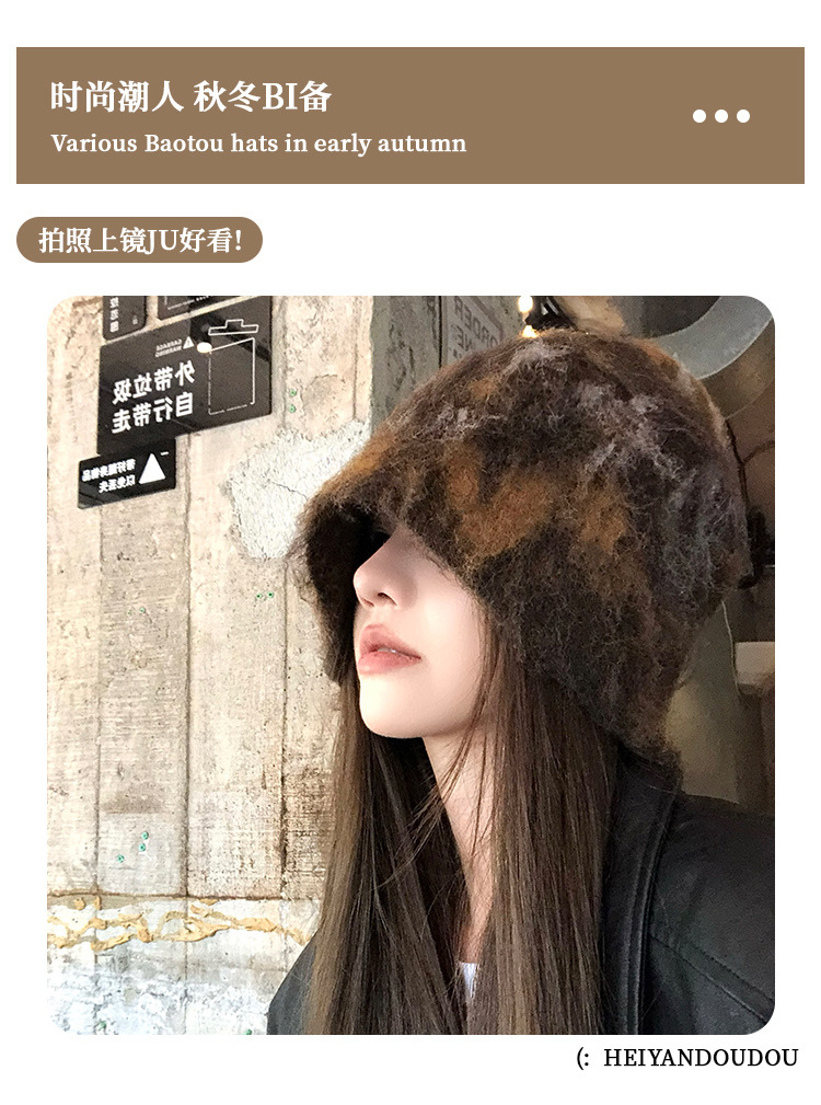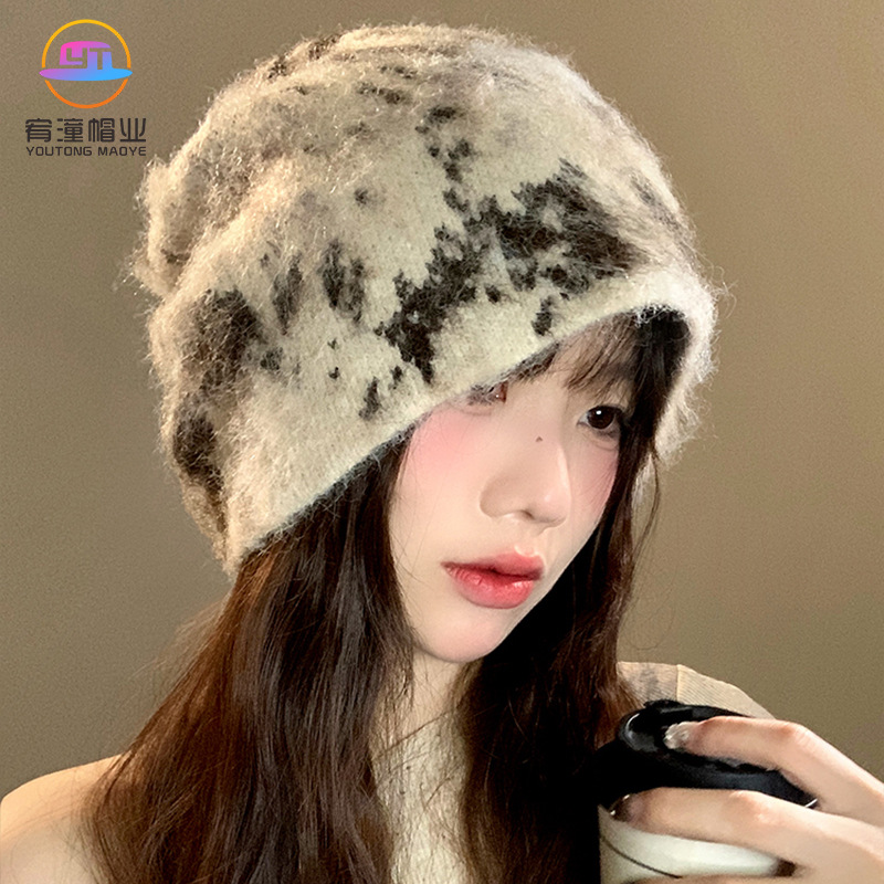 批发25年秋冬新款复古小众堆堆帽女大头围显脸小护耳针织帽子