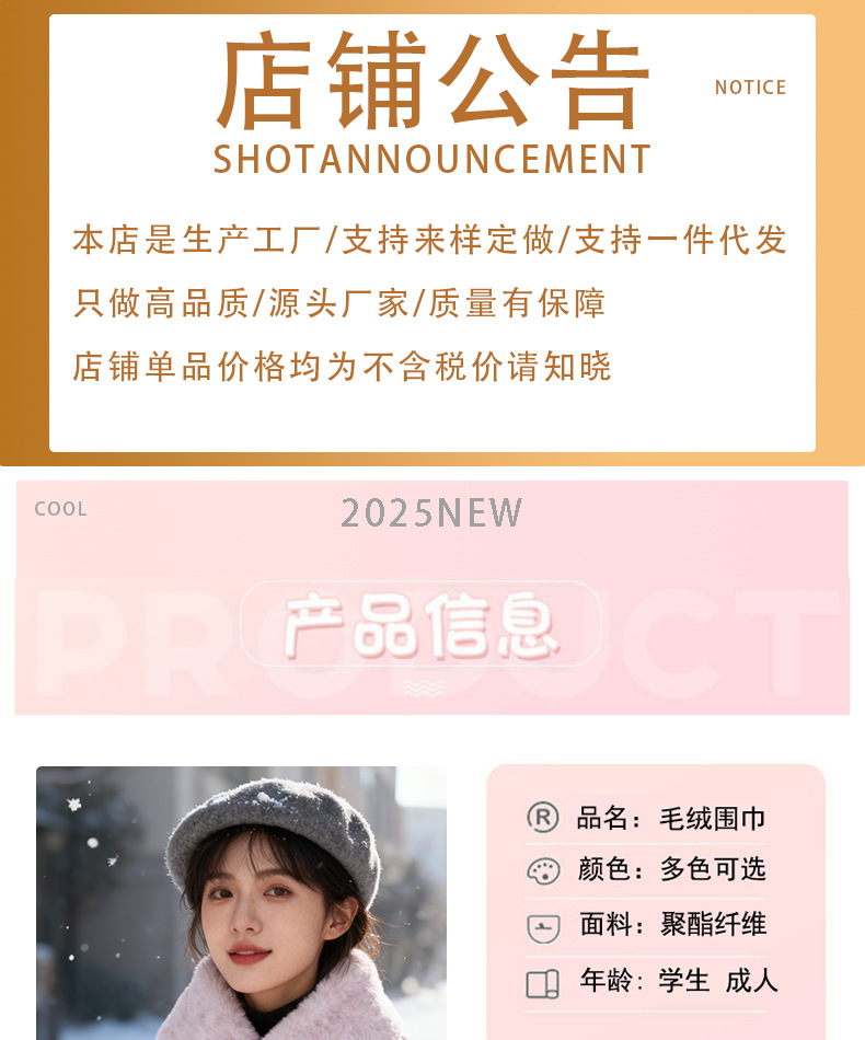 新款秋冬氛围感字母围巾女加绒加厚围脖百搭简约保暖围巾保暖围脖
