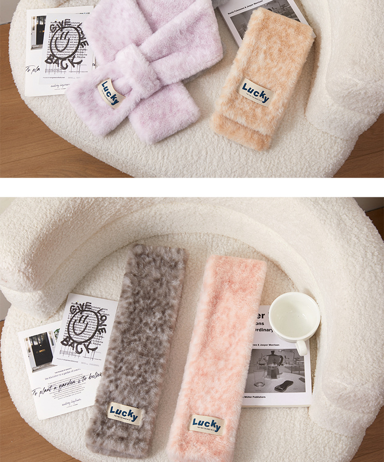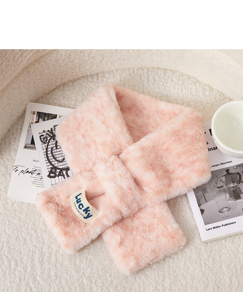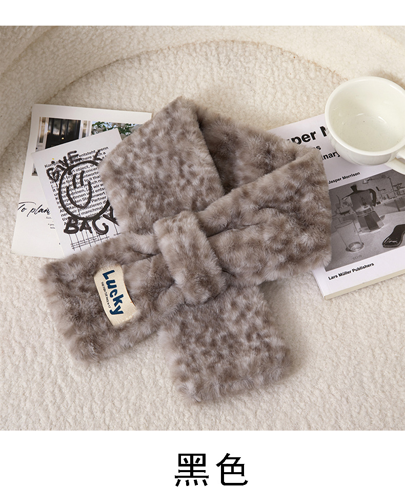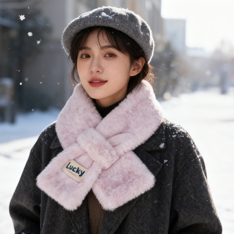 围巾女秋冬季交叉韩版百搭仿獭兔毛可爱少女加厚保暖毛毛绒围脖套