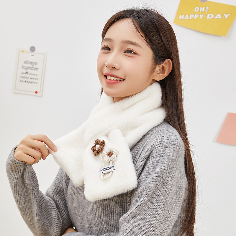 2023冬の韓国版のウサギの毛のぬいぐるみのマフラーの柔らかいマフラーの学生の女性のかわいい雲の交差の保温の厚いマフラー