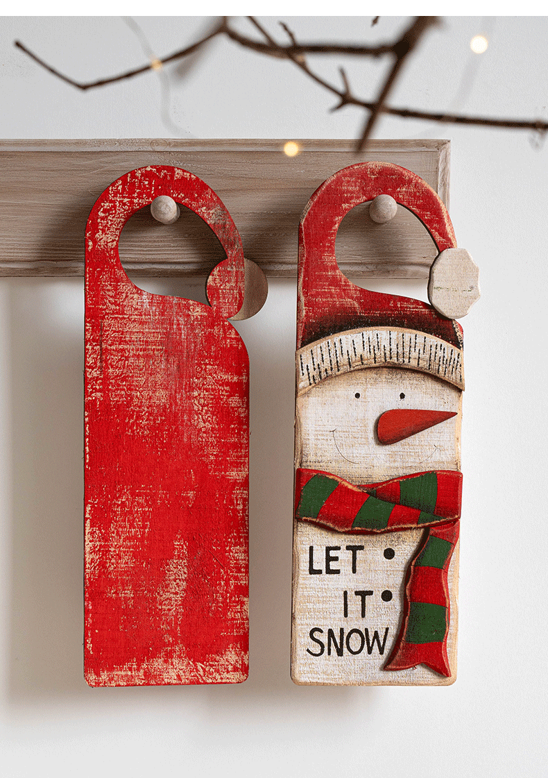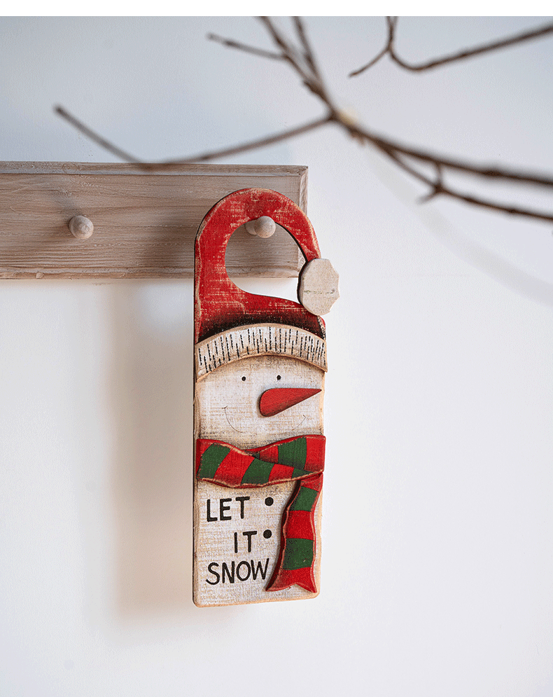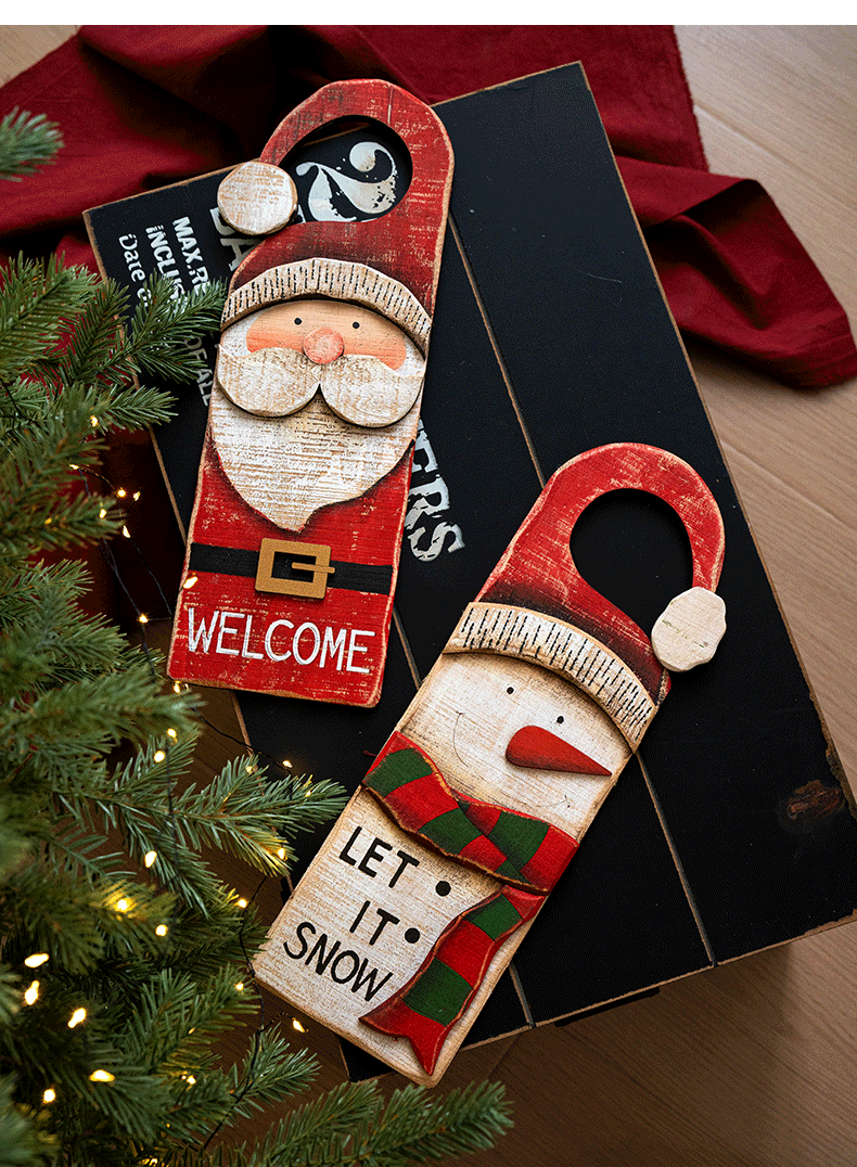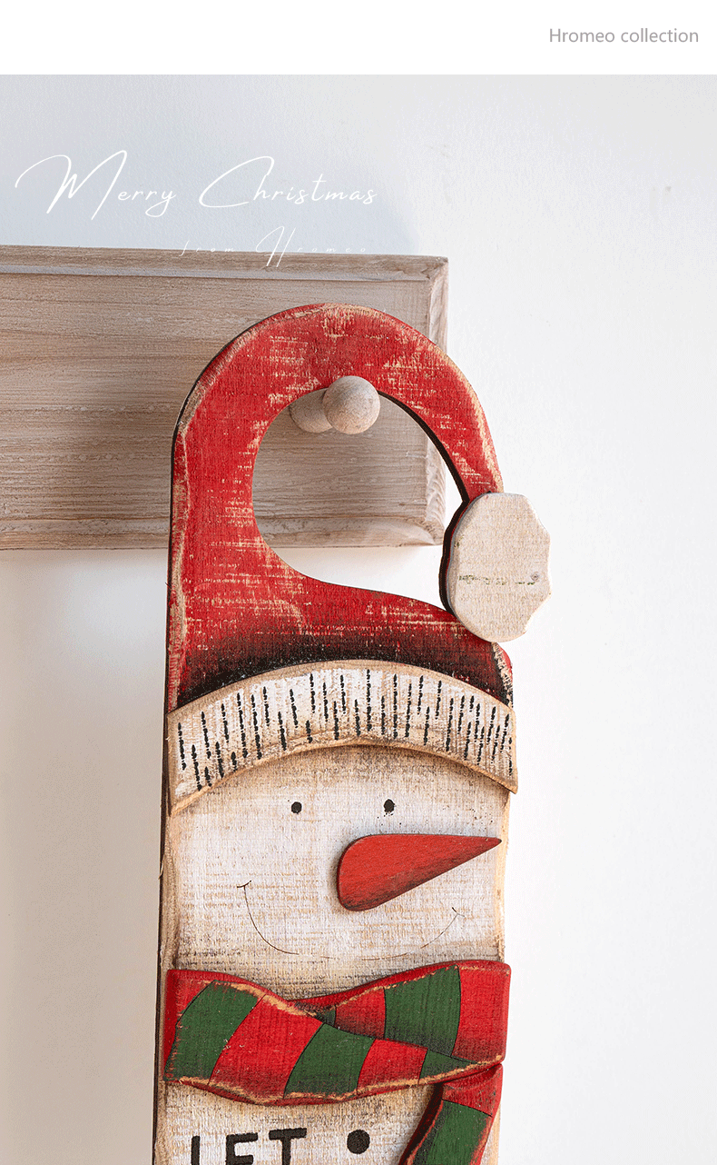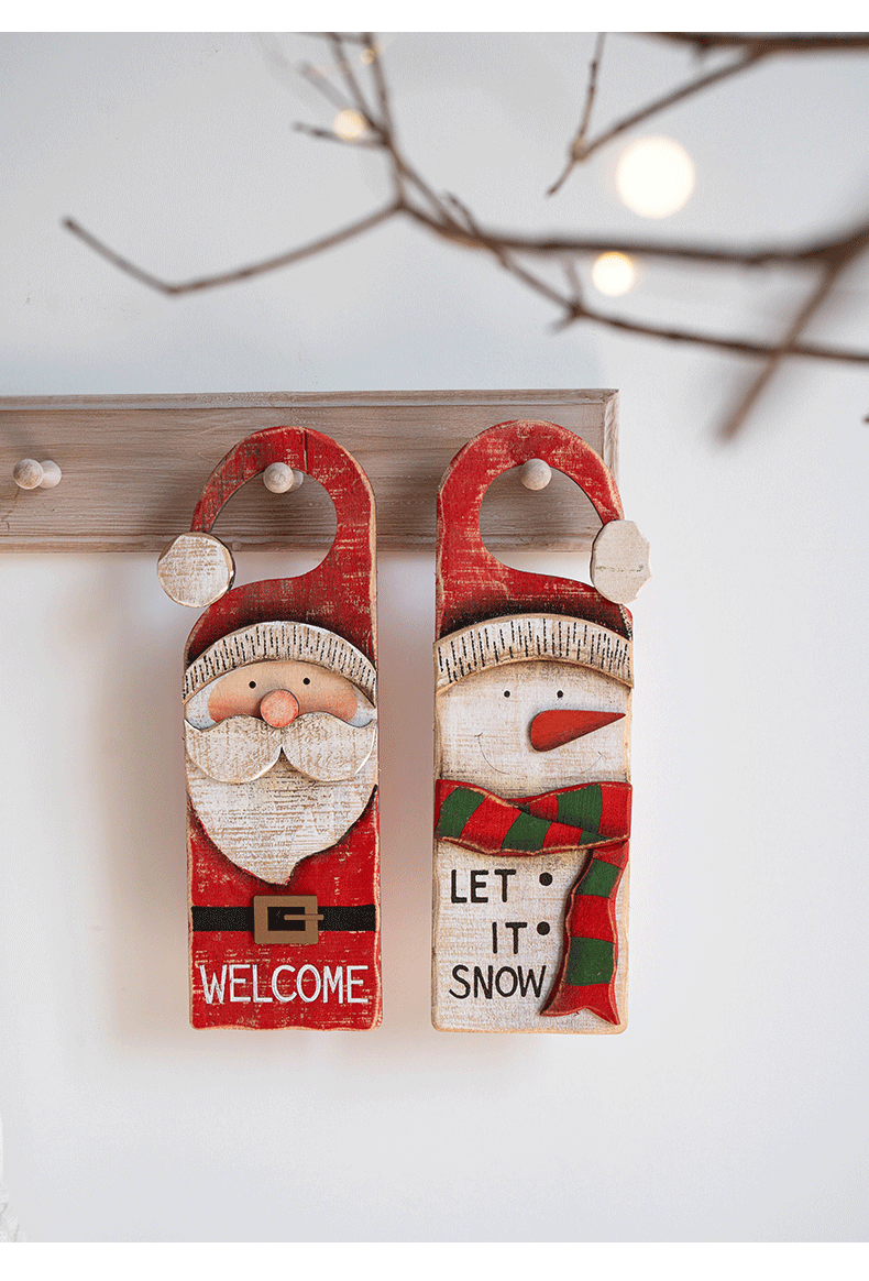 圣诞节装饰品节日橱窗装饰挂件复古木质老人雪人门牌挂牌