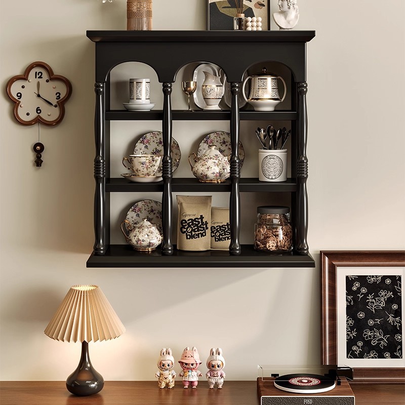 フレンチレトロ無垢材カップホルダーアメリカンコーヒーラック壁掛けカップ収納ラックパルテノン壁ディスプレイラック