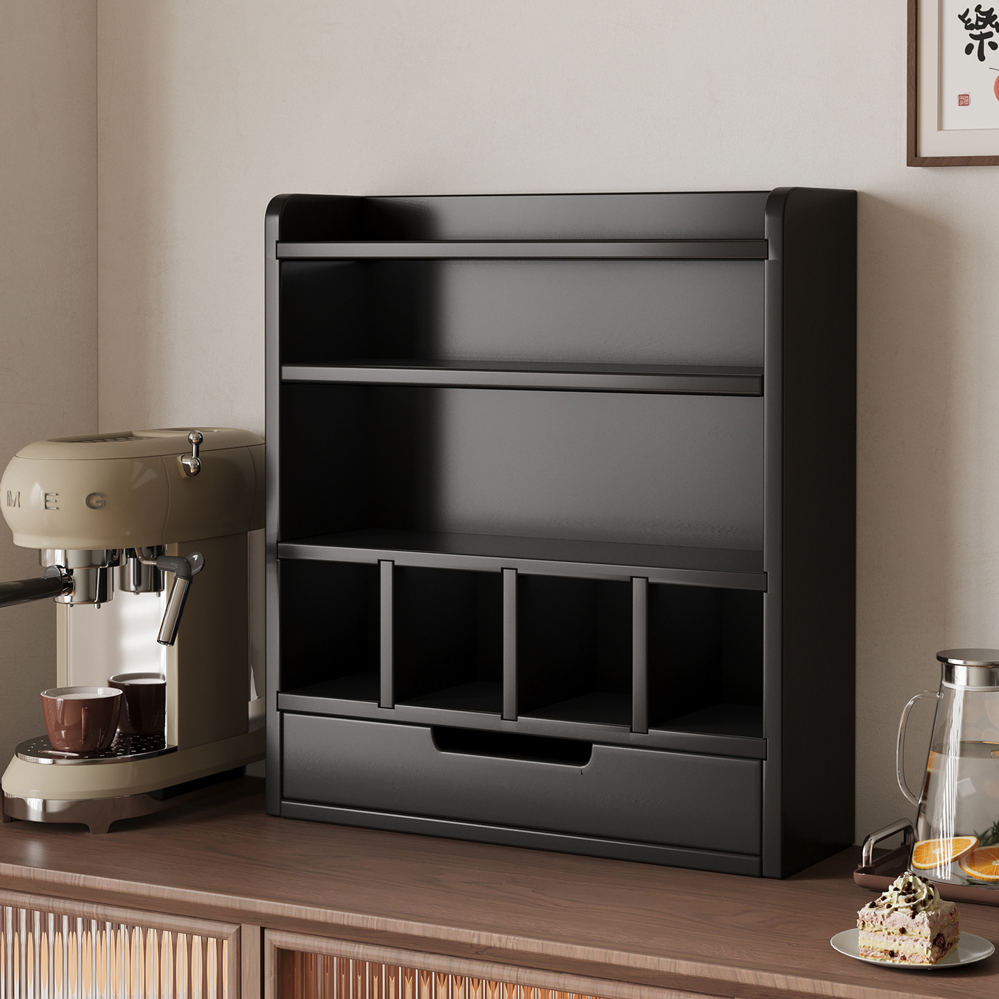 実木カップ棚台面黒胡桃カップ収納棚水杯棚カップコーヒーカップテーブル棚