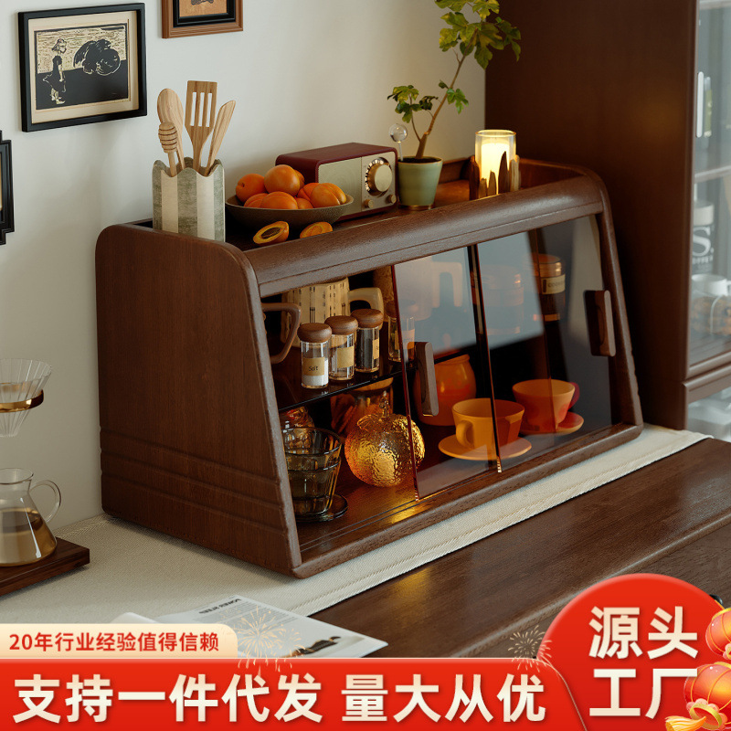 無垢材防塵カップホルダー長虹ガラスティーセット収納キャビネットカップウォーターカップコーヒーカップ収納ラックデスクトップ収納ボックス