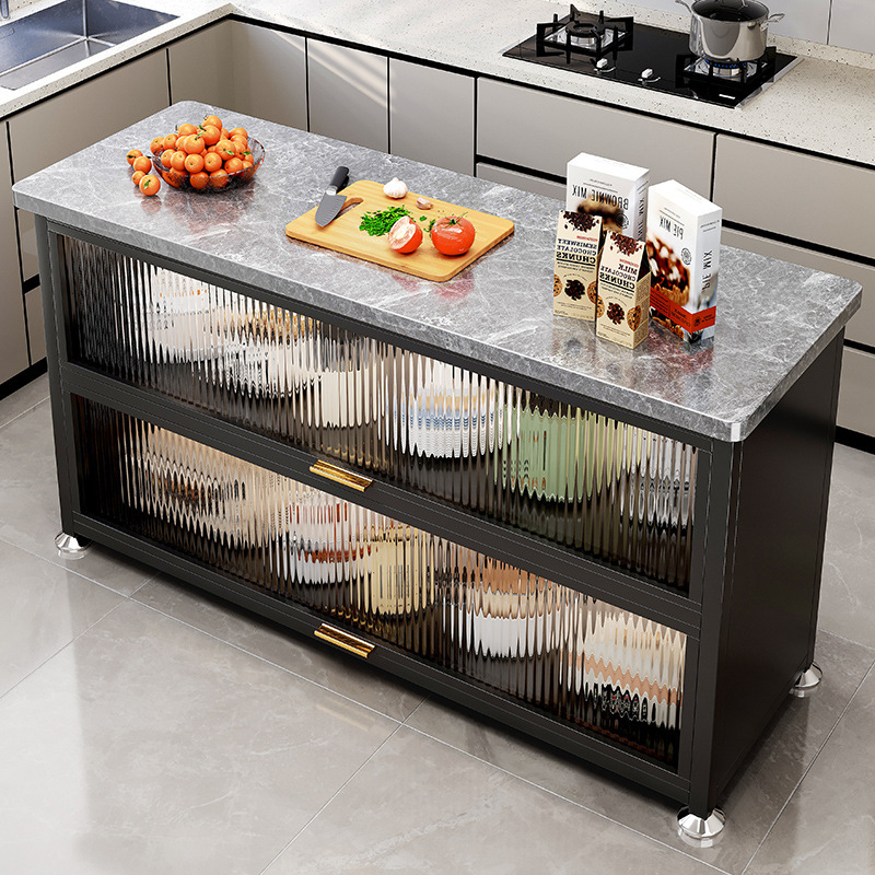 岩板厨房物置棚床置き多層台多機能電子レンジ切菜テーブル操作台食事サイドキッチンキャビネット