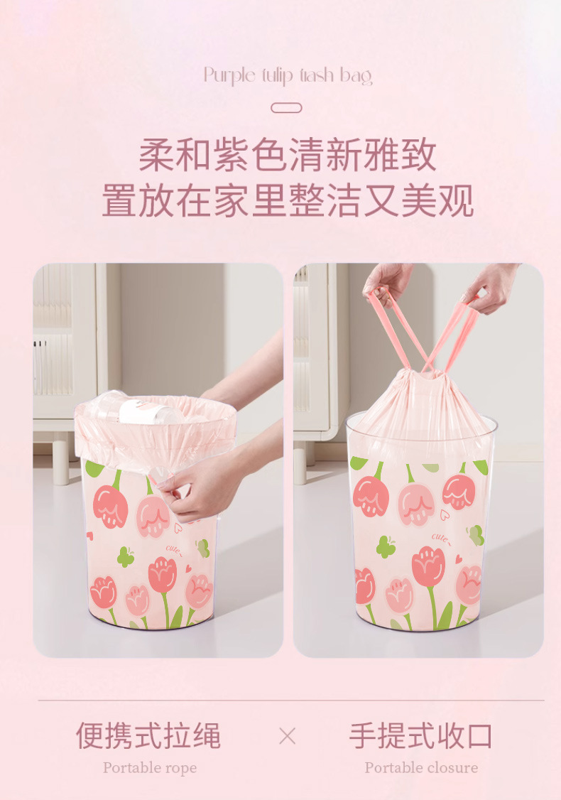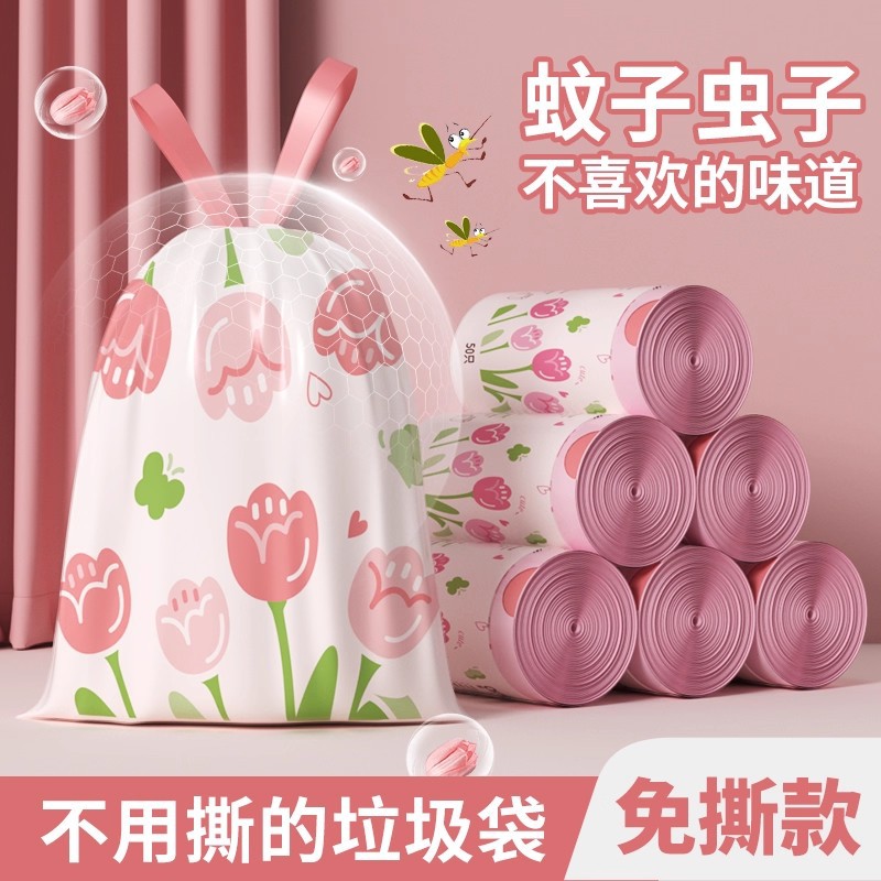 郁金香香氛大号印花抽绳垃圾袋塑料袋家用宿舍加大加厚手提式收口