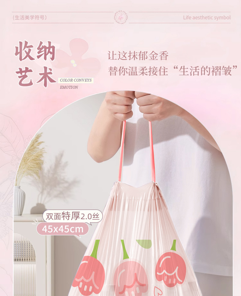 免撕抽绳垃圾袋家用加厚不易破白桃香氛手提式学生宿舍塑料垃圾袋