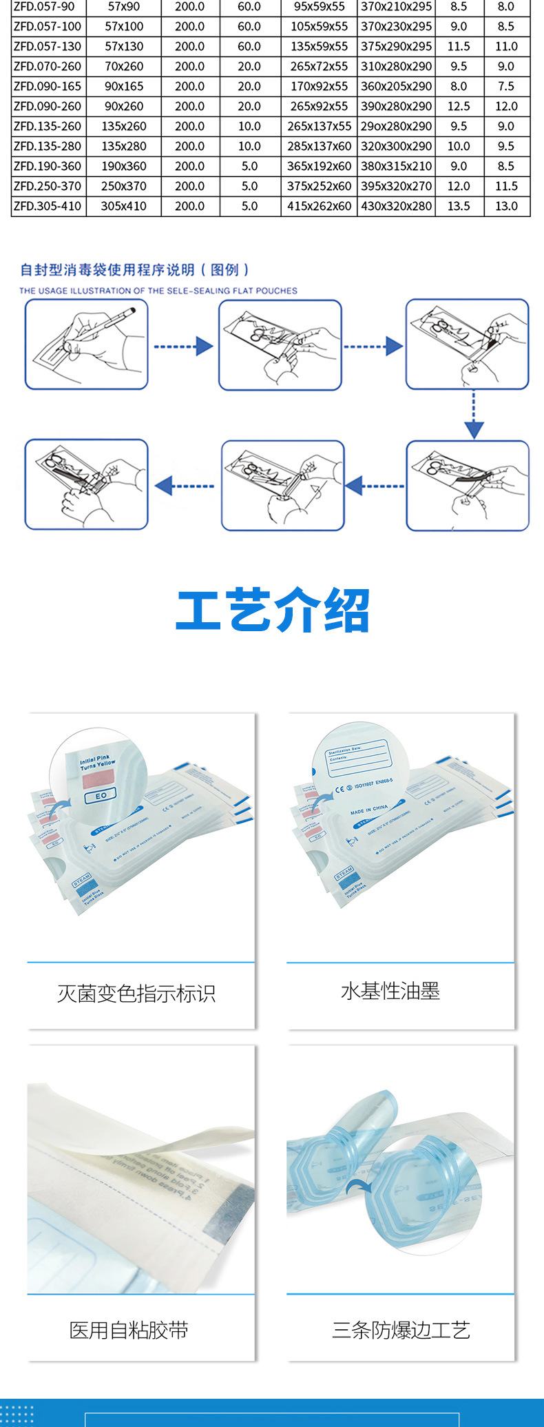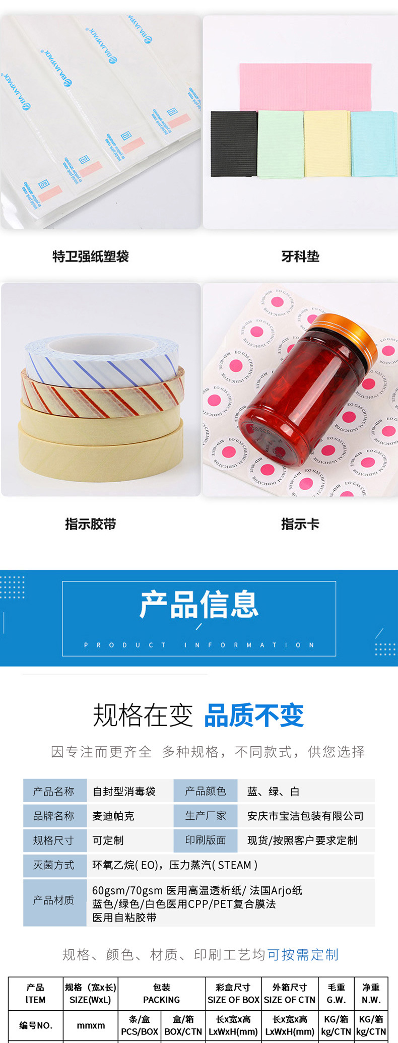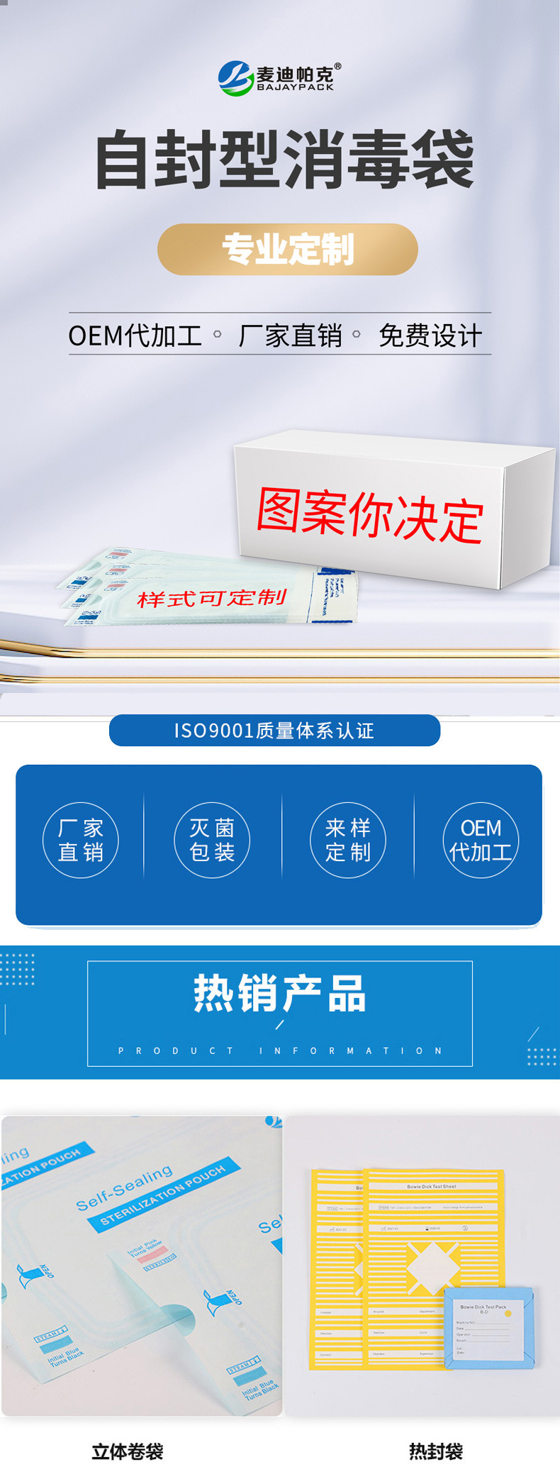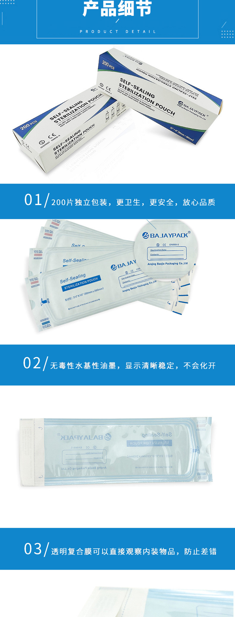 医療機器滅菌袋消毒使い捨て口腔機器粘着袋蒸気エチレンオキシド無菌自封