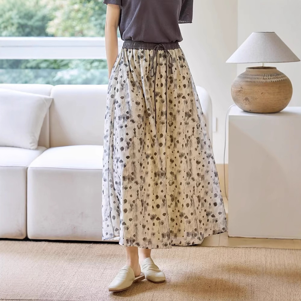 25秋冬綿麻婦人服新作、麻絞り染め新中式ゴムウエストロング丈万能アーティスティックゆったりスカート