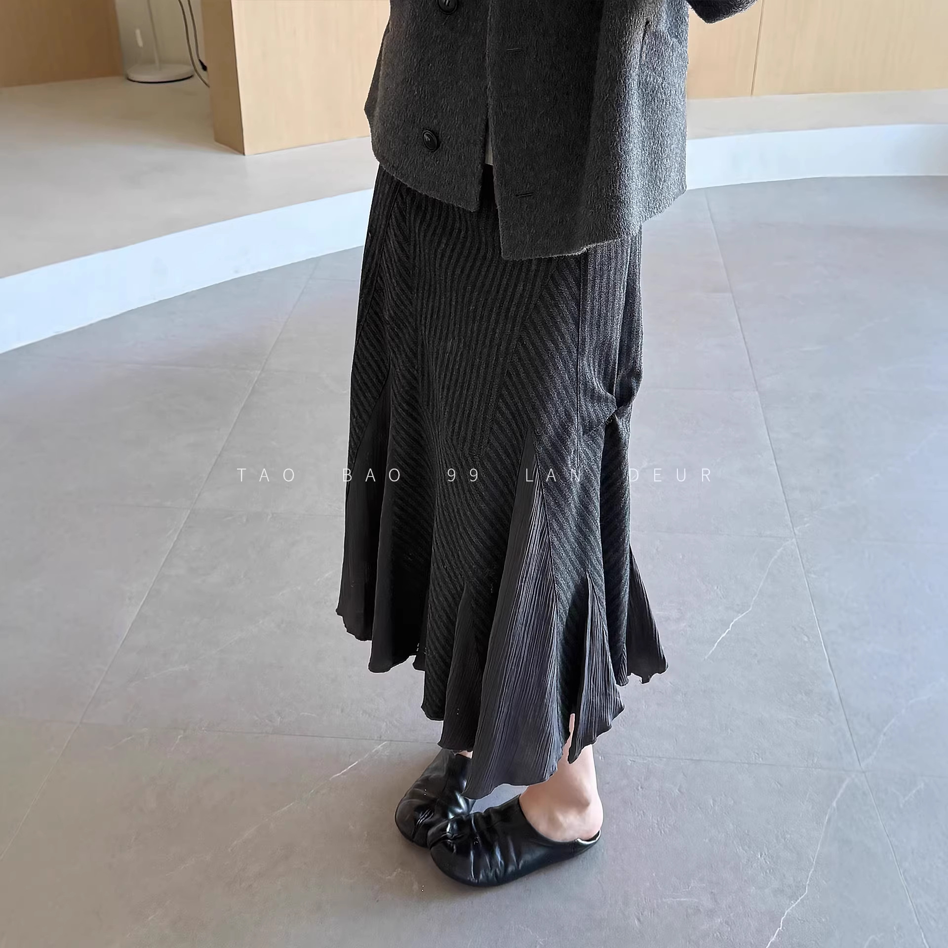 LAN DEUR暮色温柔40羊毛高克重双线加密立体不规则鱼尾羊毛裙