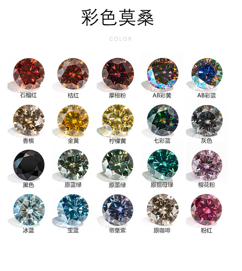 Shalin ジュエリーカラーモアッサナイトラウンドカラフルなシャンパンゴールドイエローピンクグリーンブルーモアッサナイト卸売