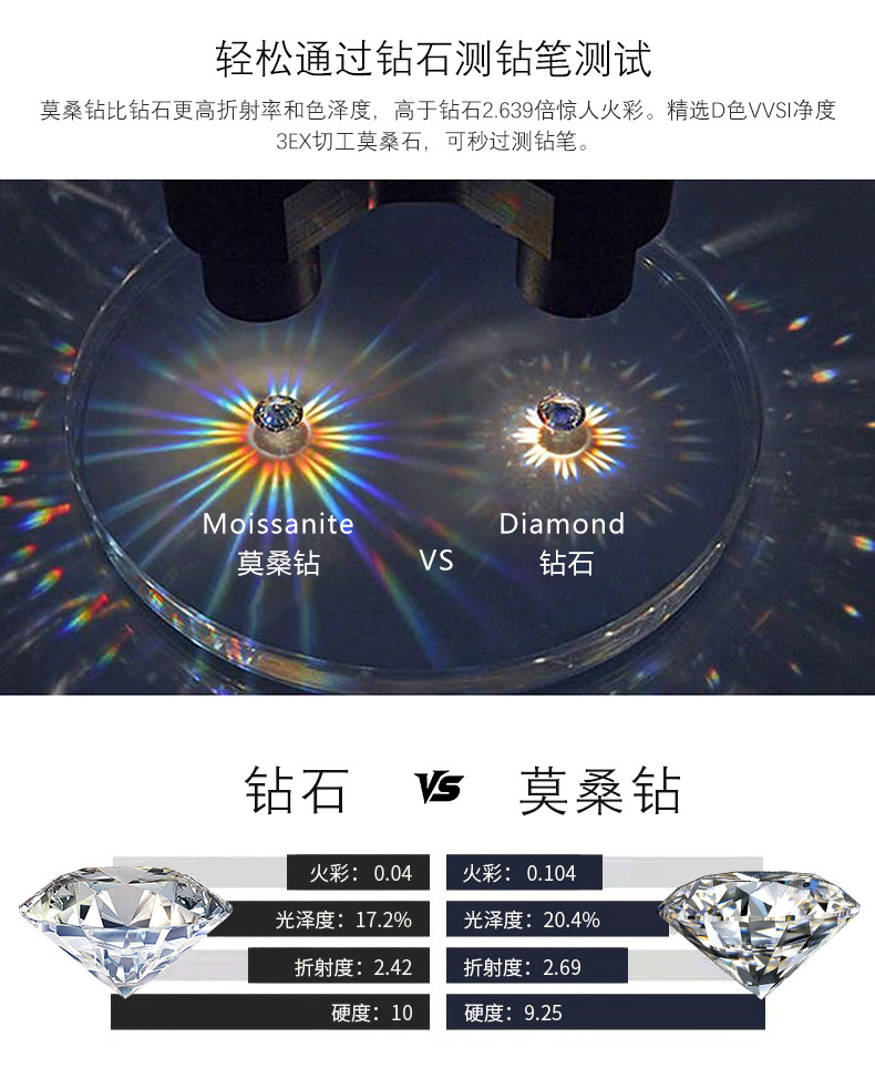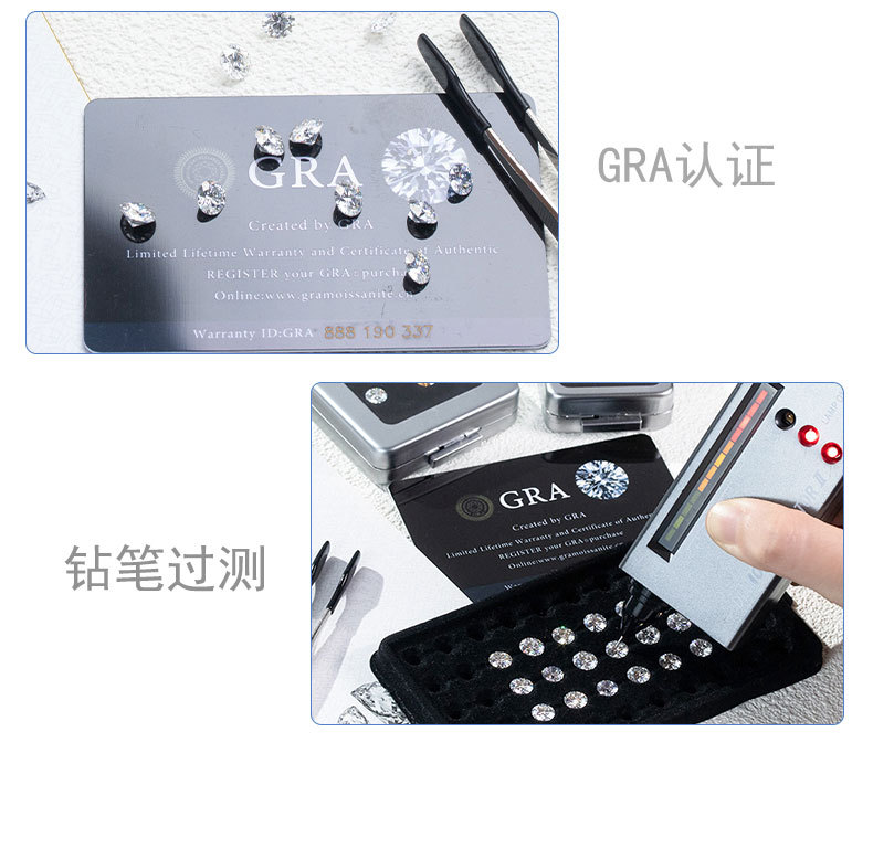 梧州厂家批发白DE色VVS级莫桑石圆八心八箭碳硅石裸石可过测钻笔