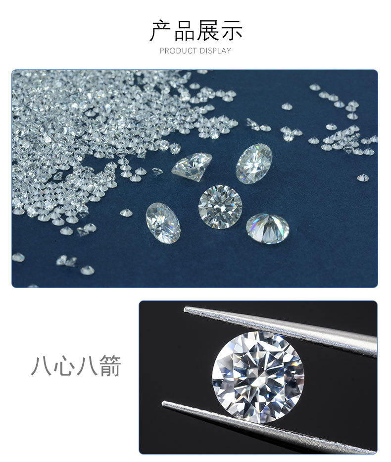 圆形D色八心八箭莫桑石 工厂货源正品莫桑石裸石不带GRA腰码